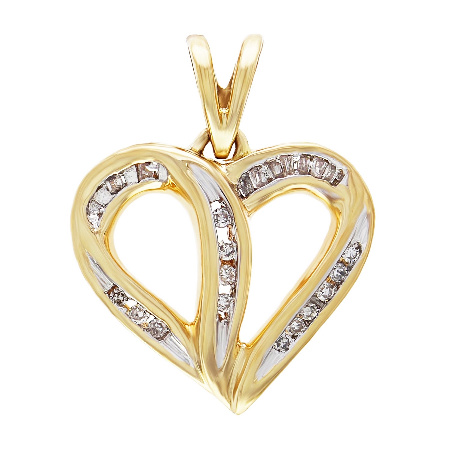 10k Yellow Gold 0.12ctw Diamond Open Heart Double Bail Pendant