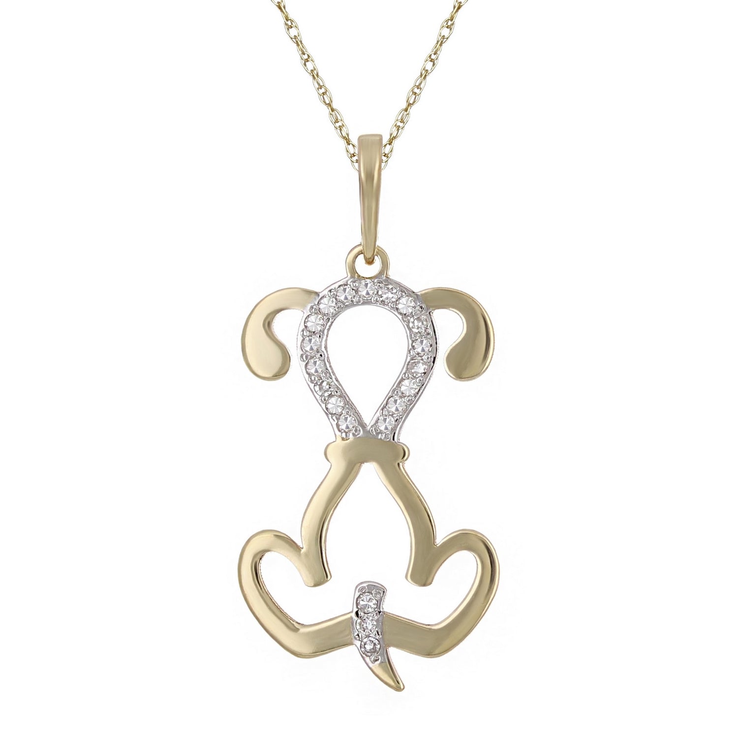 10k Yellow Gold Diamond-Studded Puppy Dog Shaped Pendant Necklace (0.03 cttw, I-J Color, I1-I2 Clarity), 18"