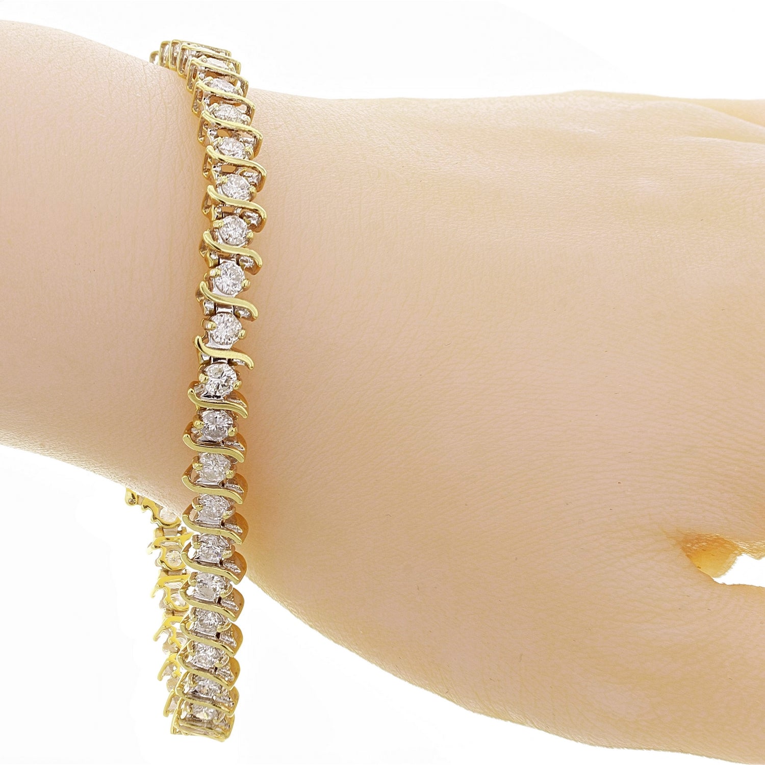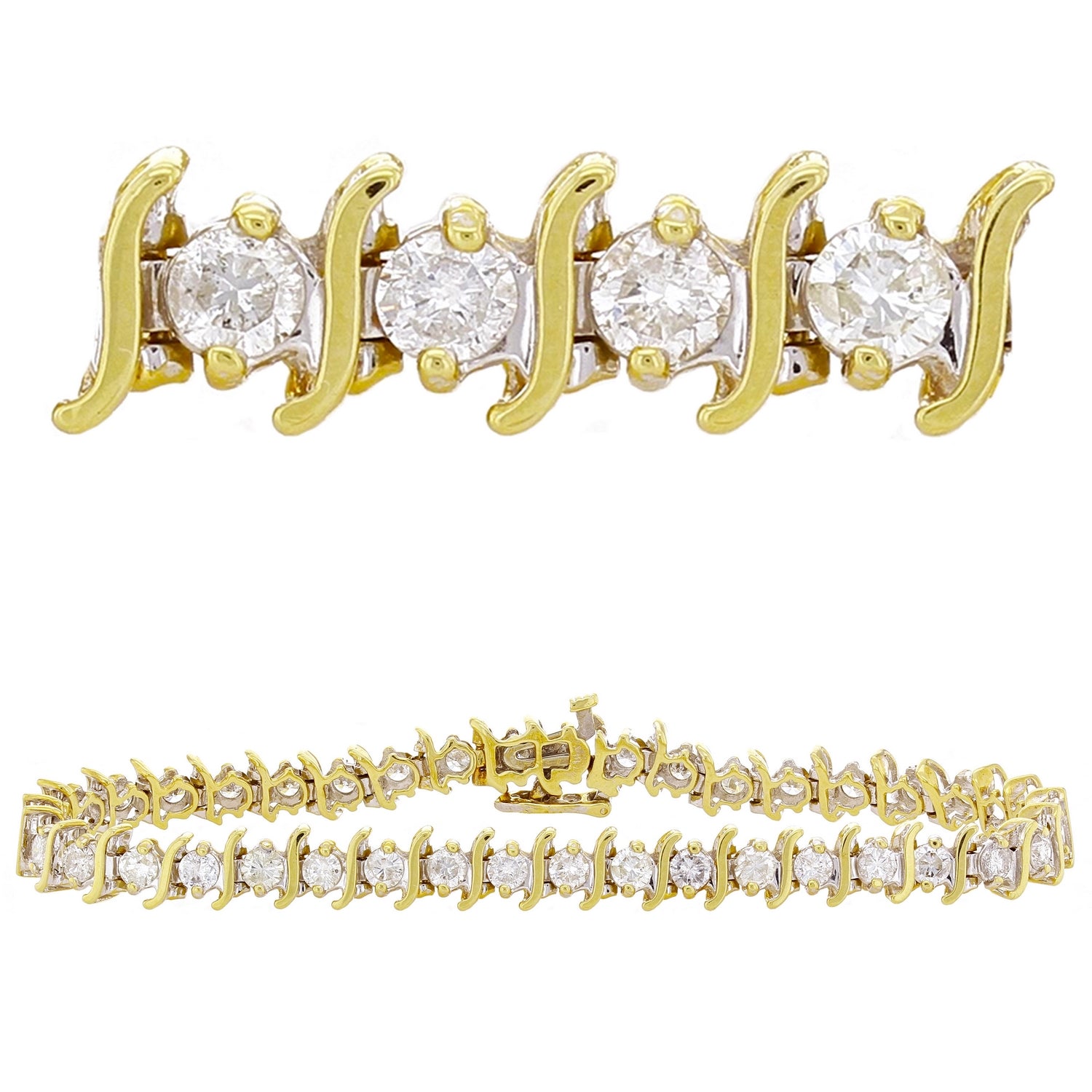 14k Yellow Gold 6ctw Diamond Wavy Bar Link Tennis Bracelet