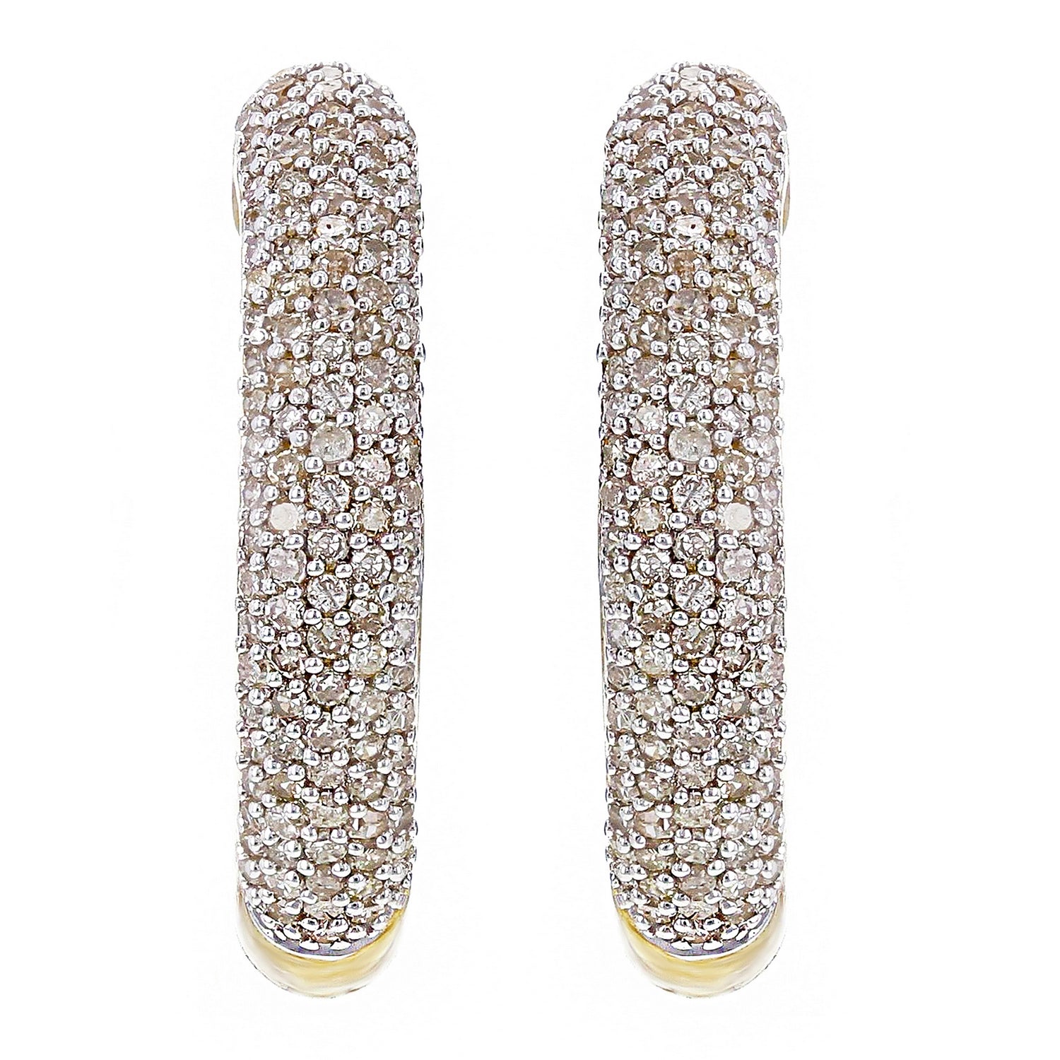 14k Yellow Gold 0.85ctw Diamond Double Sided Hinge Hoop Earrings