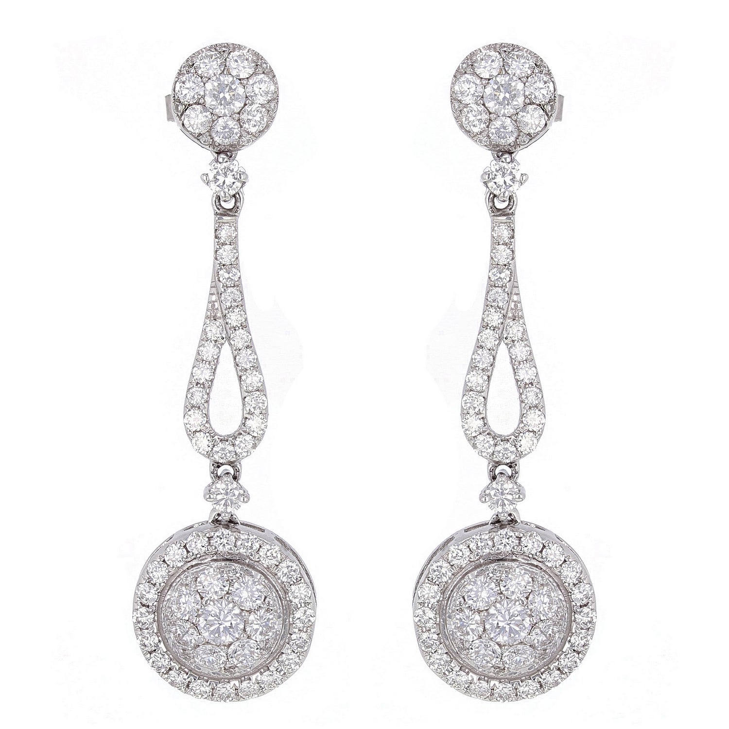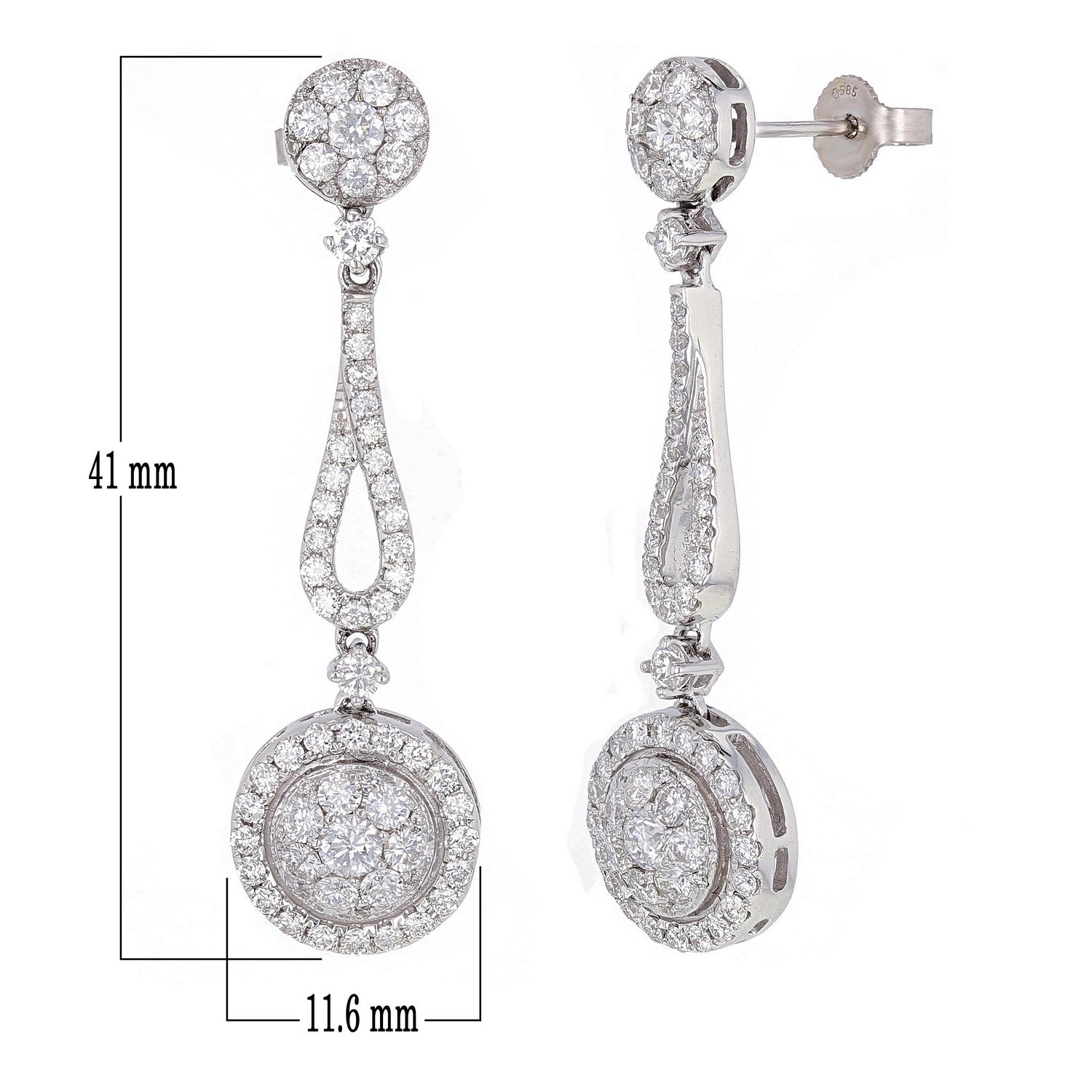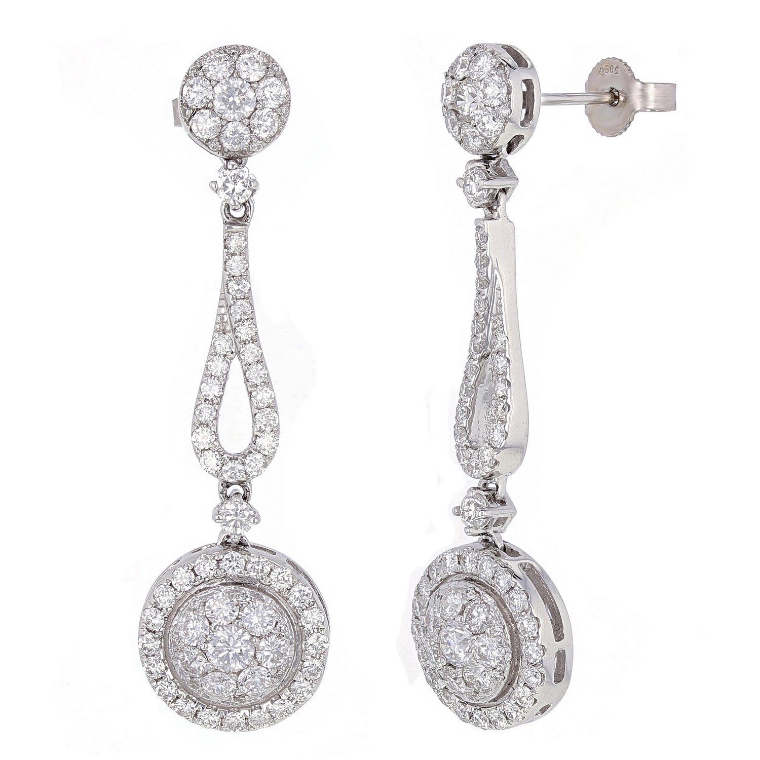 14k White Gold 2.35ctw Diamond Cluster Drop Earrings