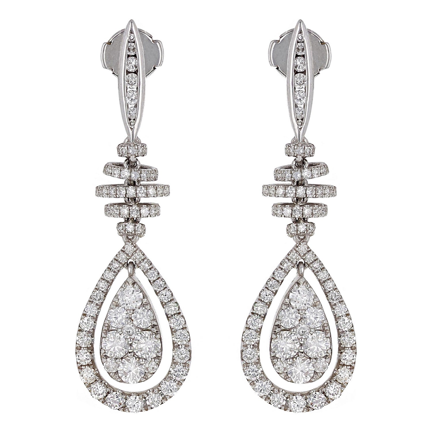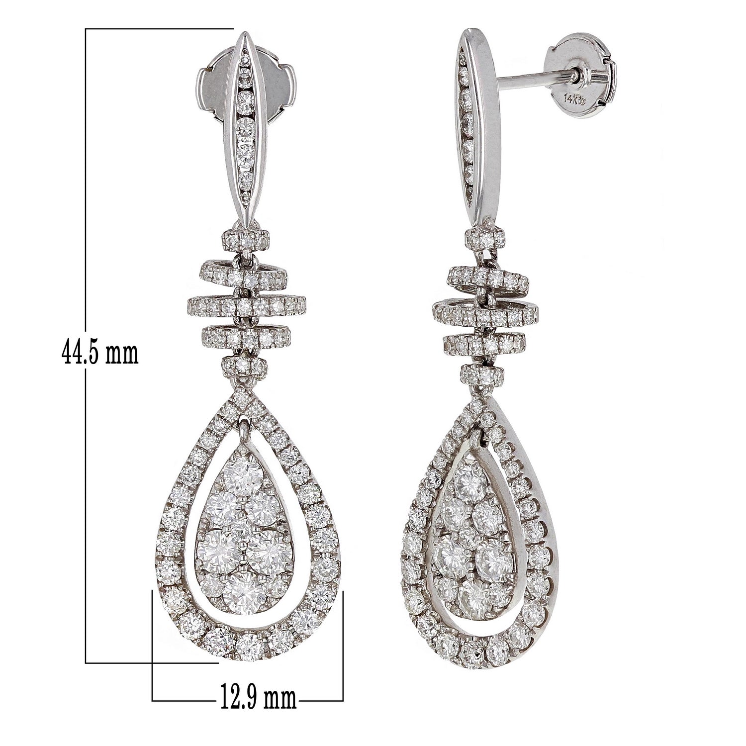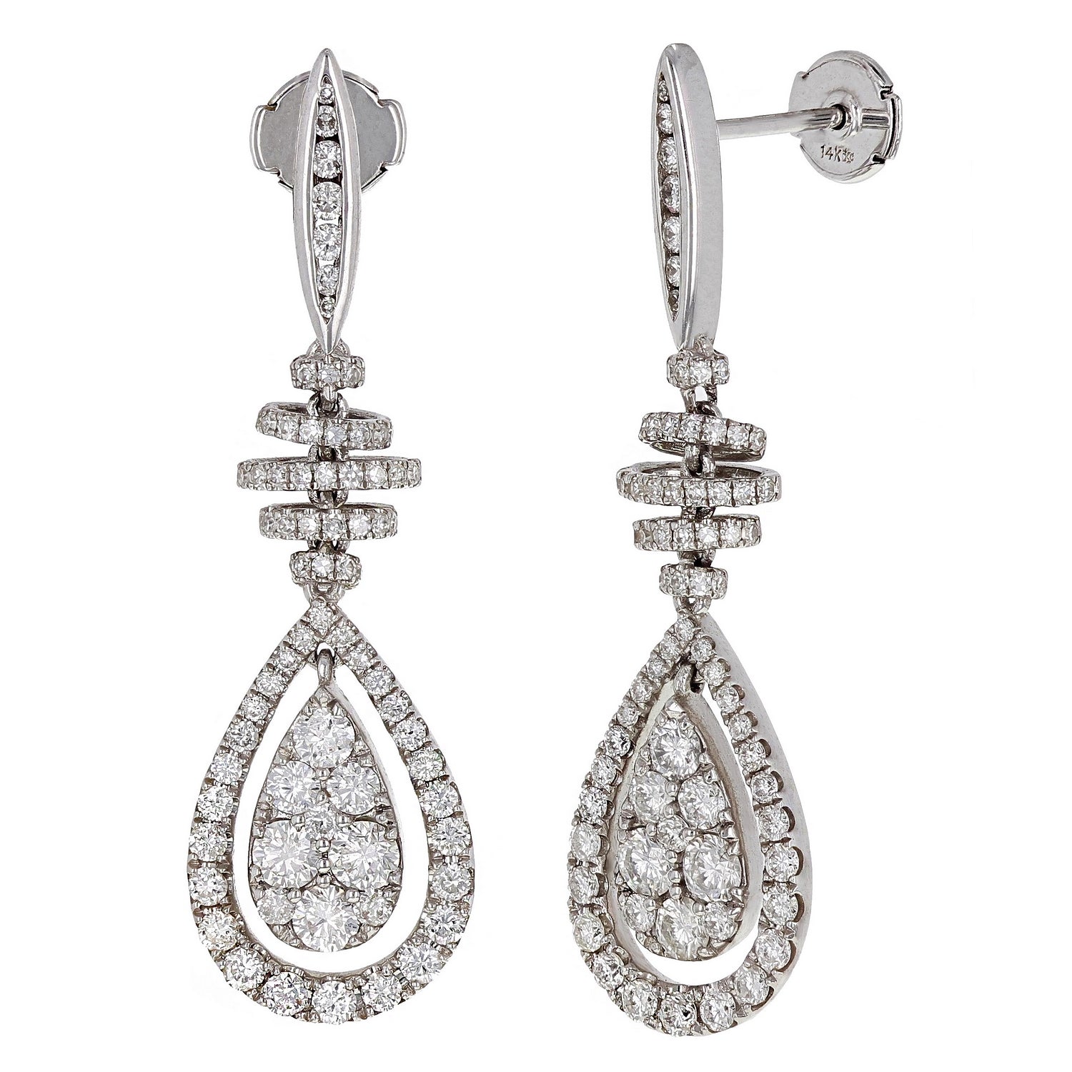14k White Gold 2 3/4ctw Diamond Spiral Pear Tear Drop Earrings