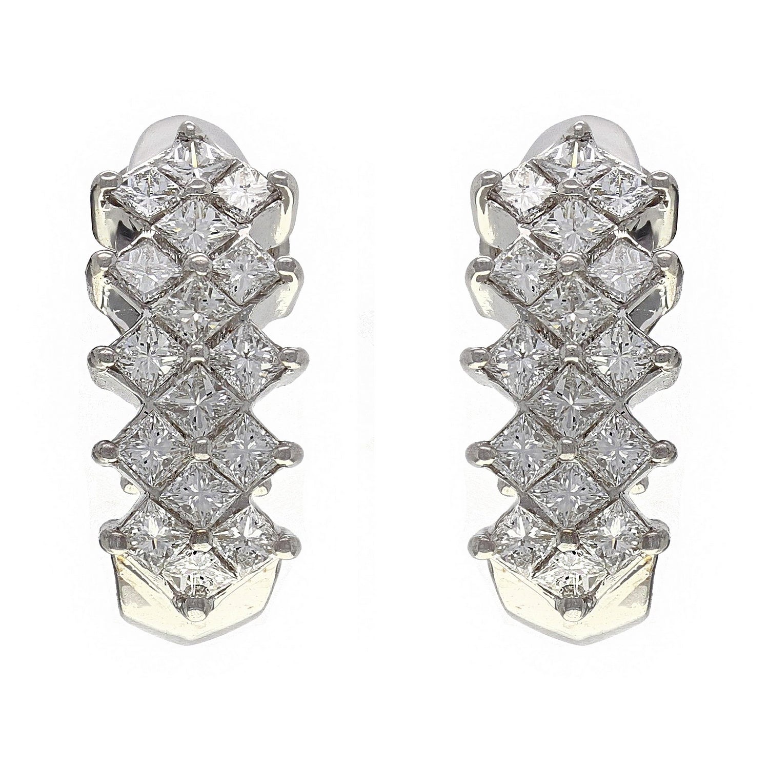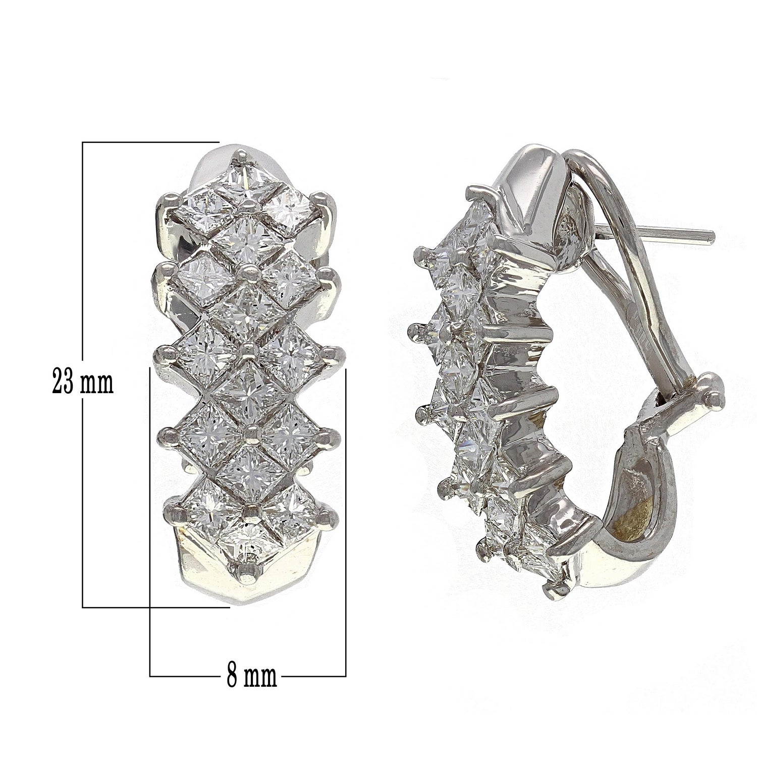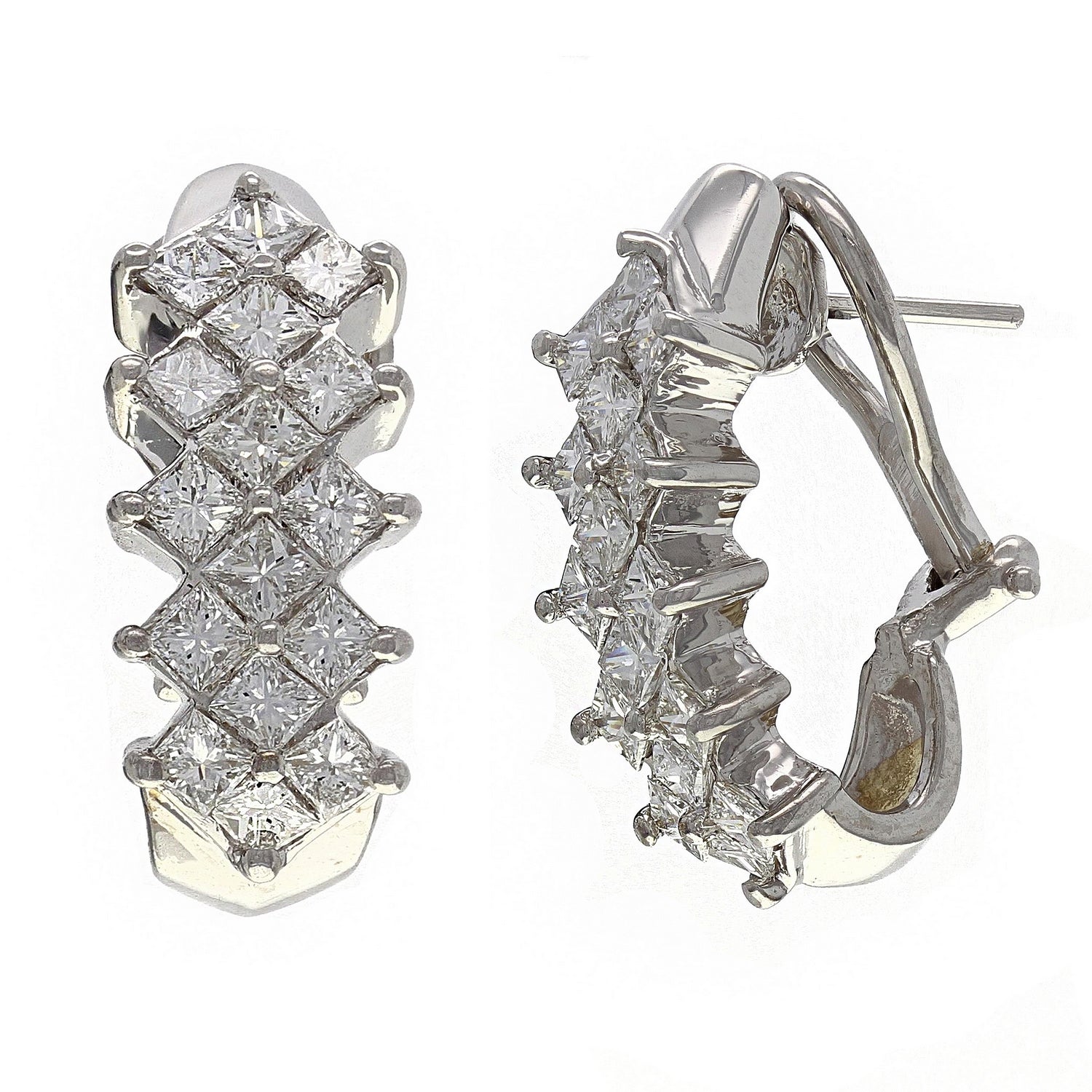 14k White Gold 3.95ctw Princess Cut Diamond Curve Omega Back Earrings