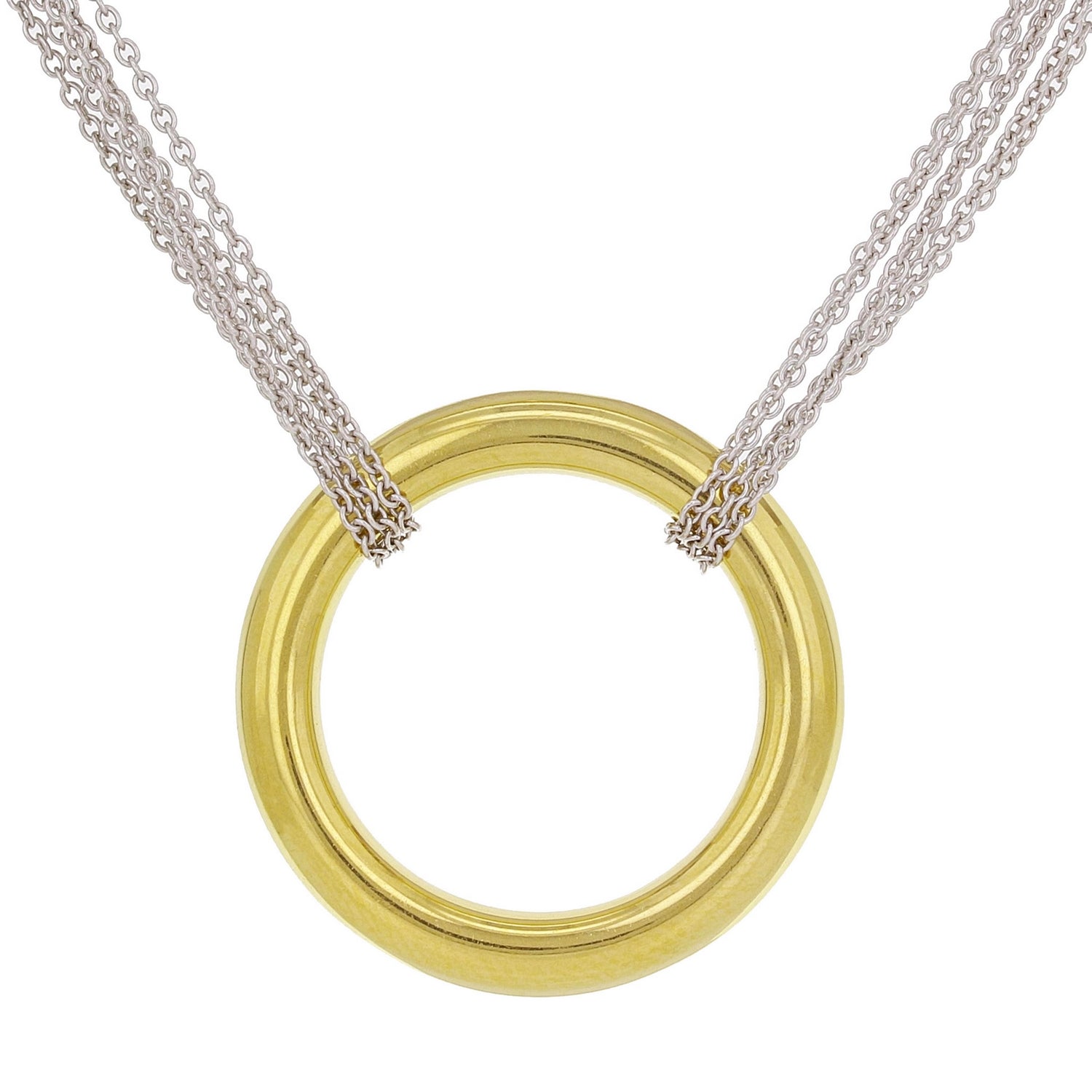 14k Yellow & White Gold Eternity Love Circle Multi-Chain Necklace