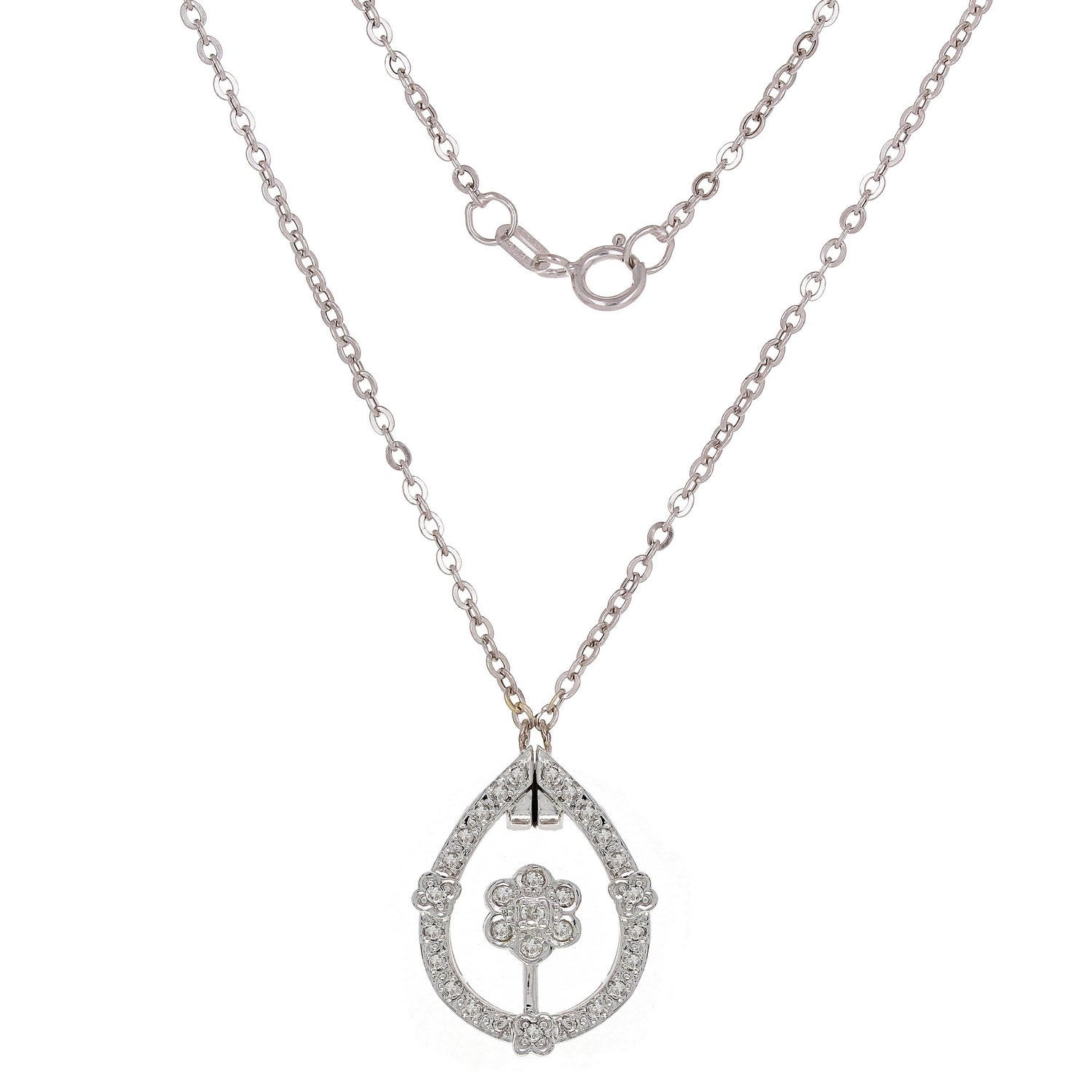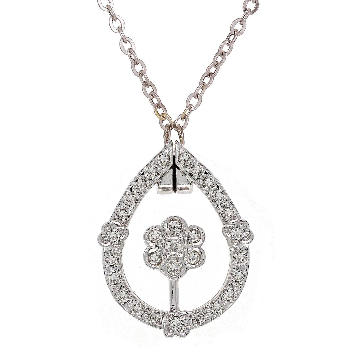 Italian 14k White Gold 0.22ctw Diamond Flower in a Pear Pendant Necklace, 18"