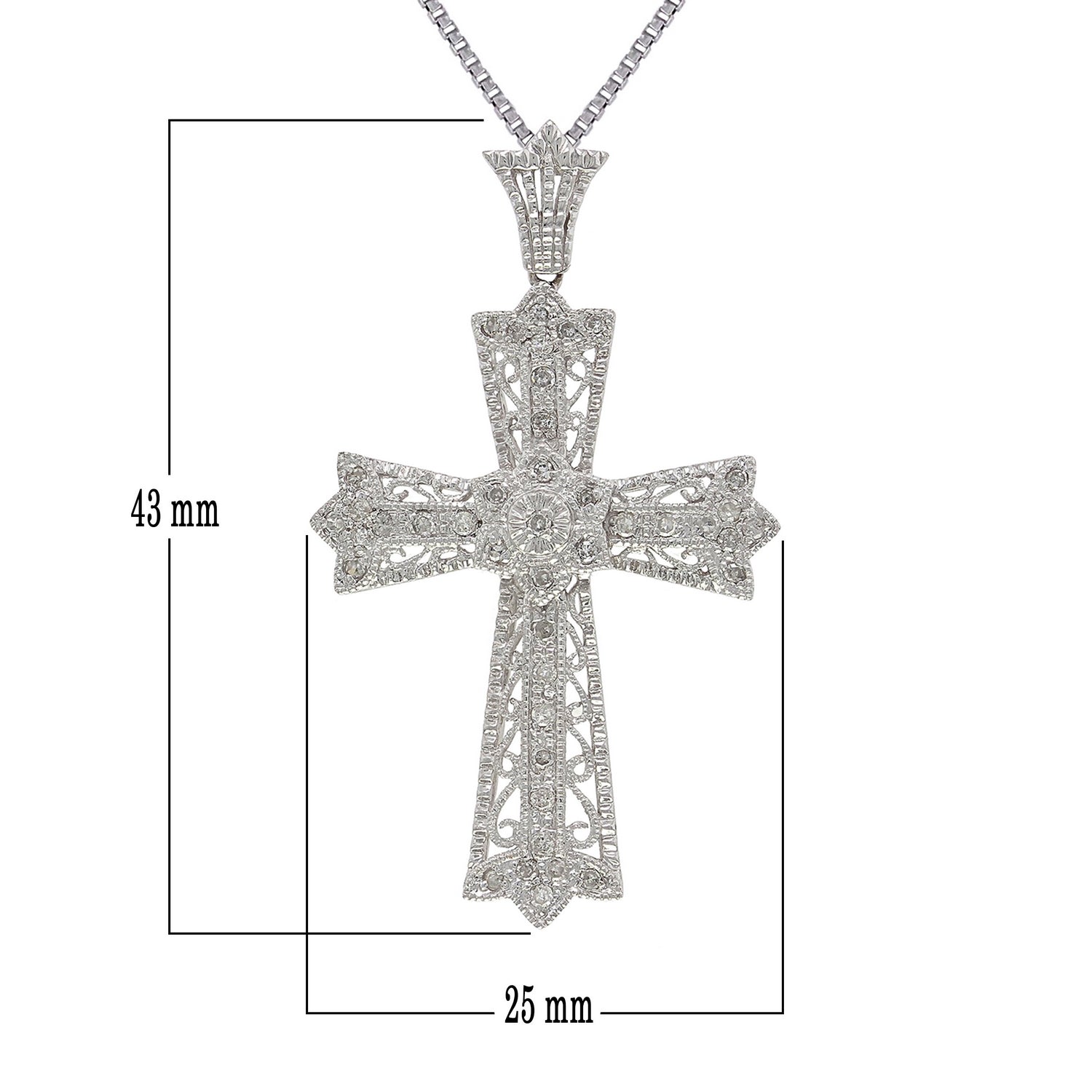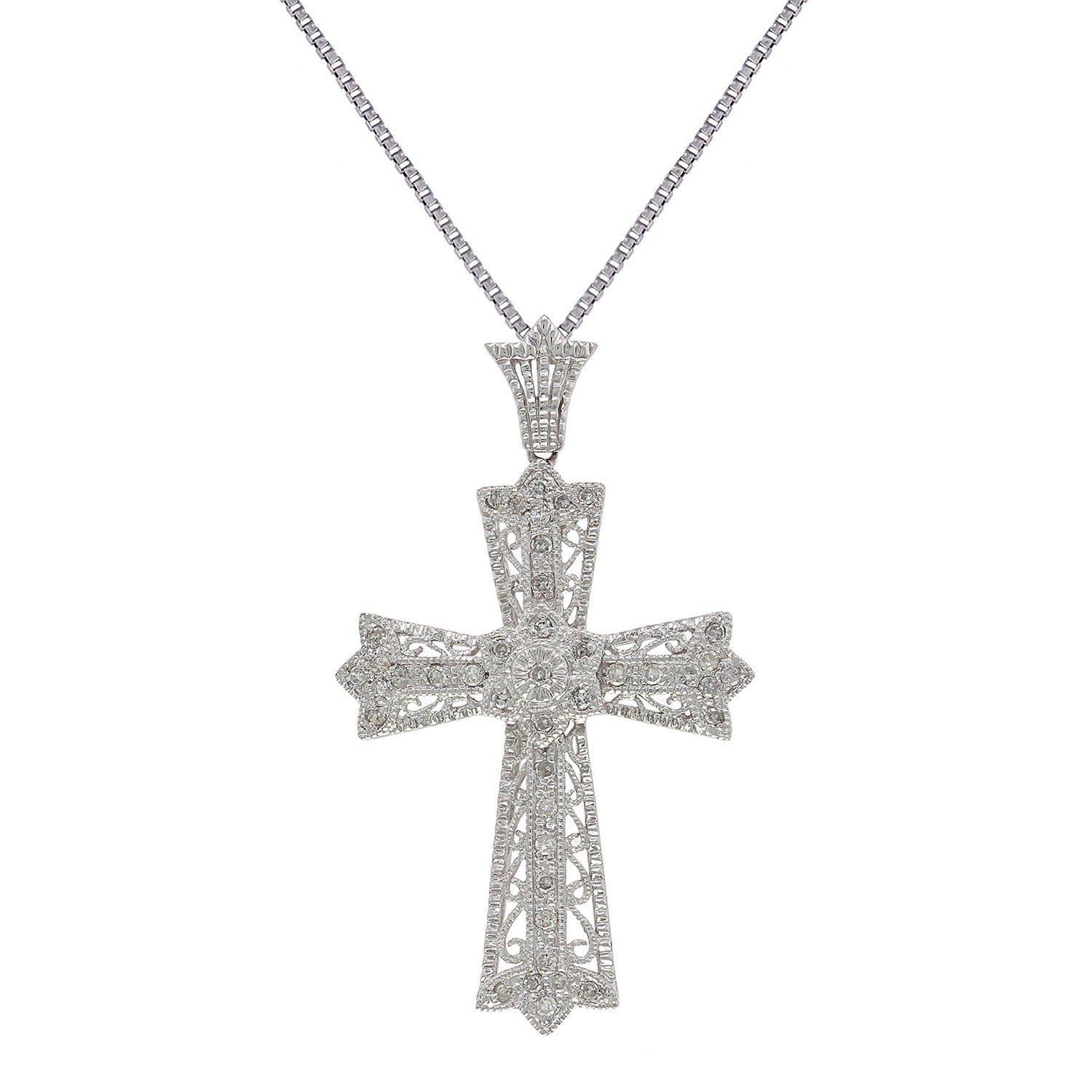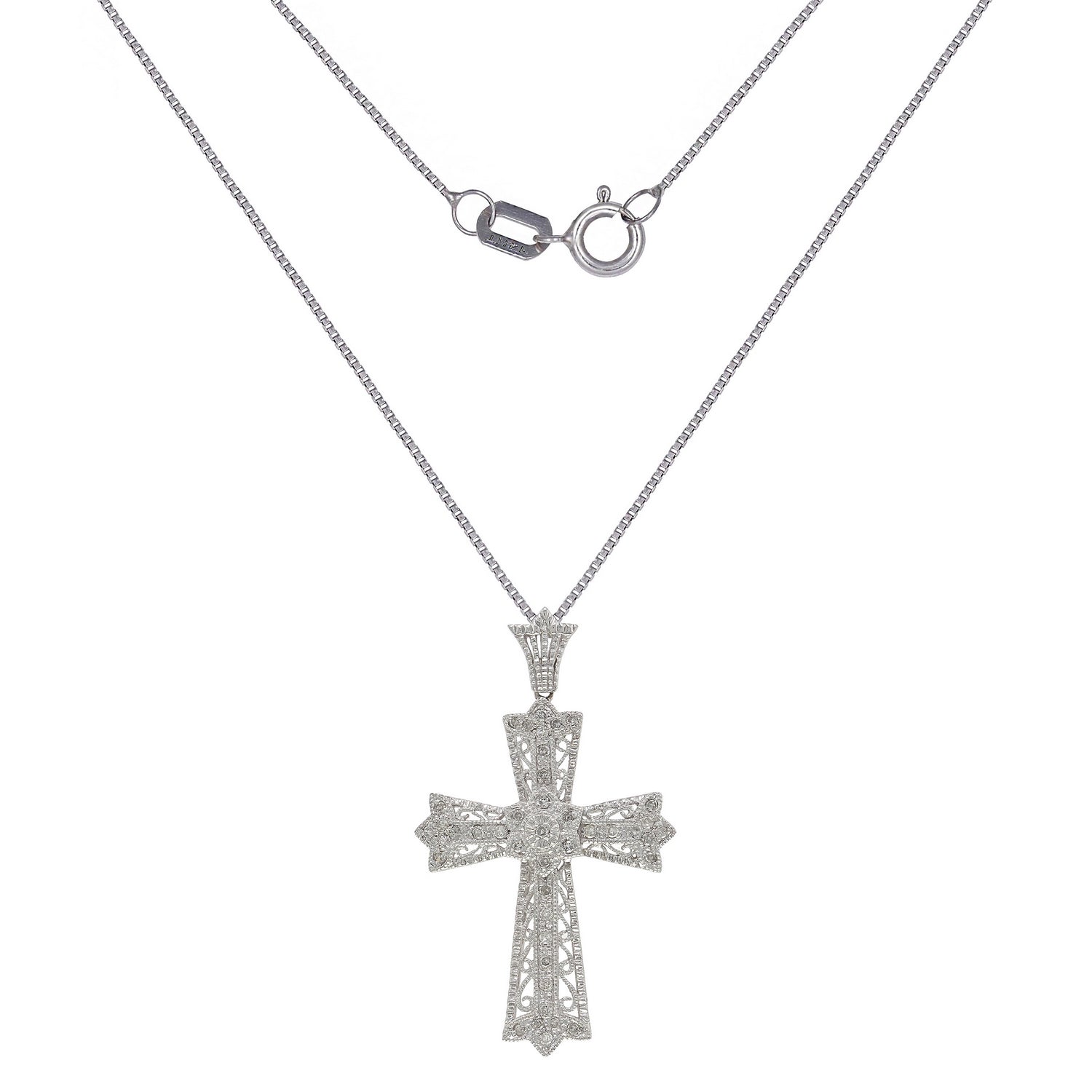 Italian 14k White Gold 1/3ctw Diamond Celtic Cross Pendant Necklace, 18"