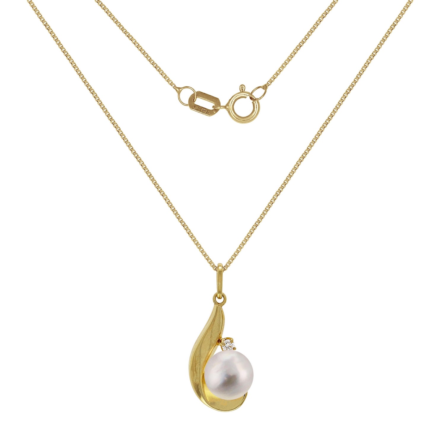 Italian 14k Yellow Gold 0.03ctw Diamond & 7mm White Cultured Pearl Necklace, 18"