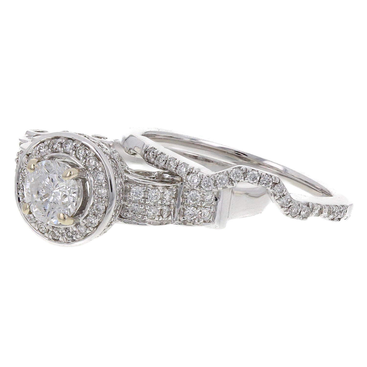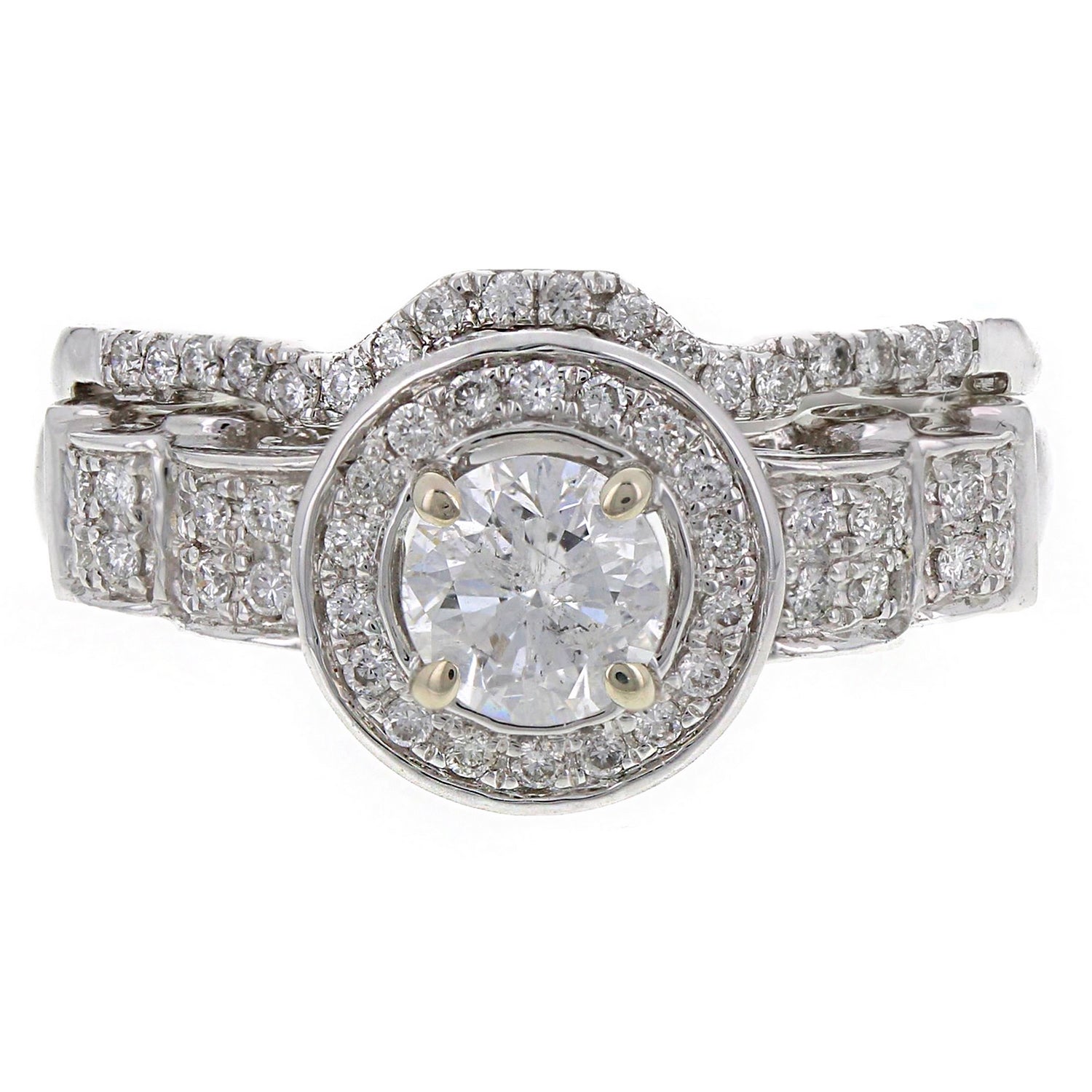 14k White Gold 1.17ctw Diamond Engagement & Wedding 2 Piece Bridal Ring Set