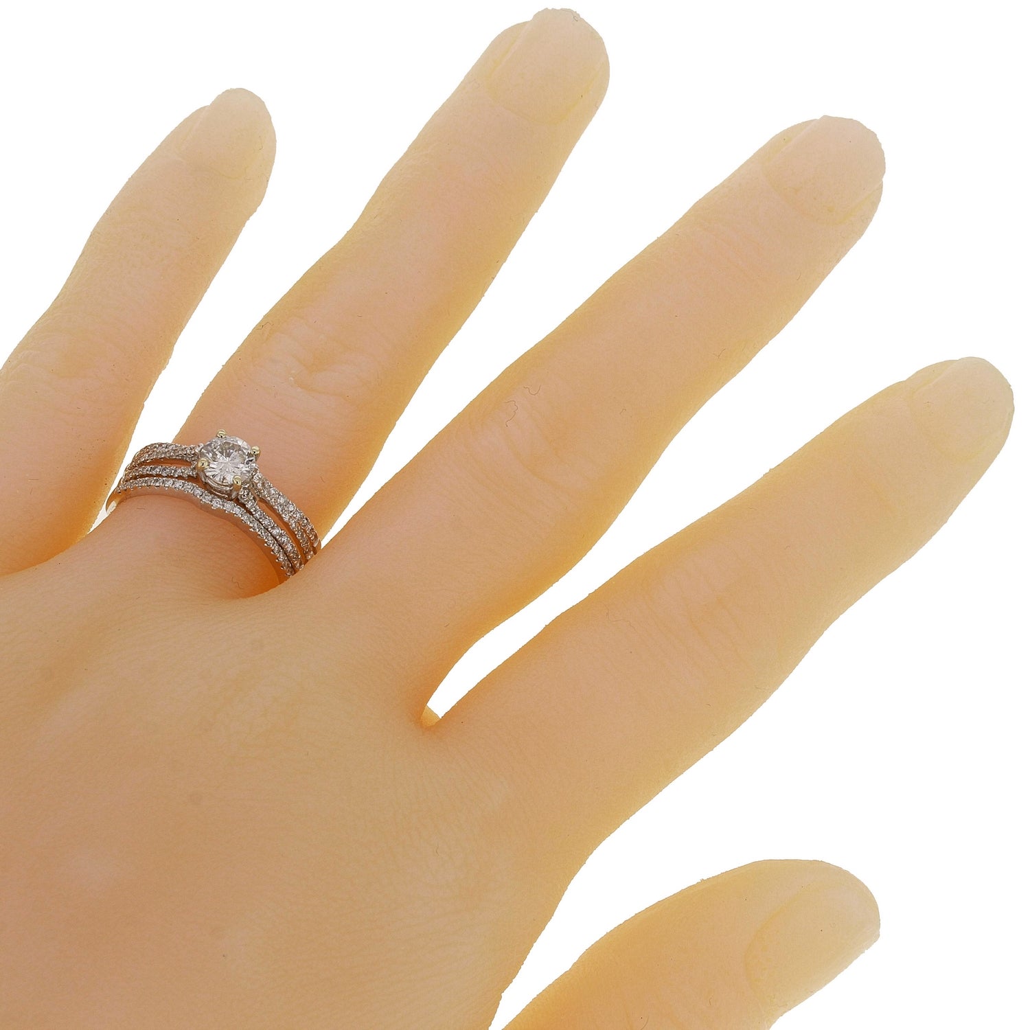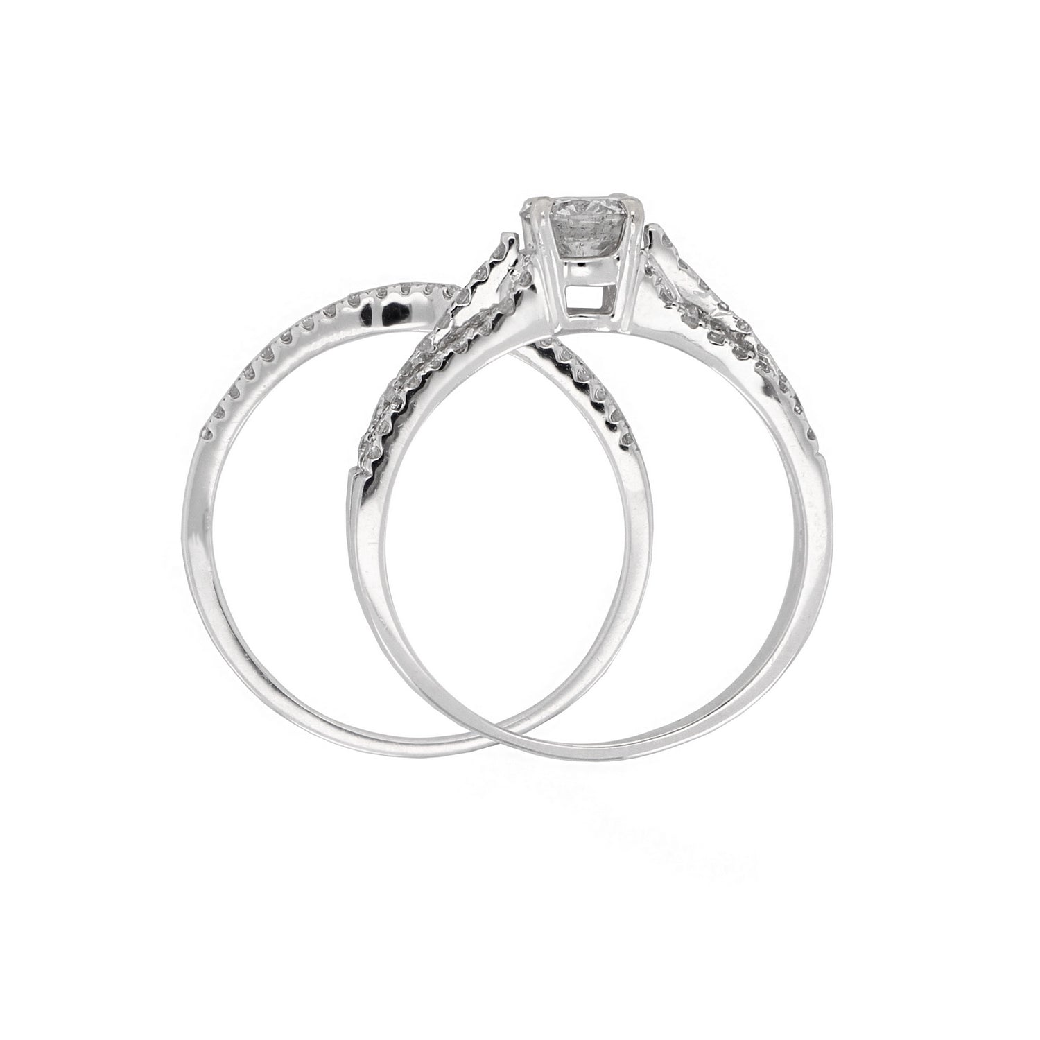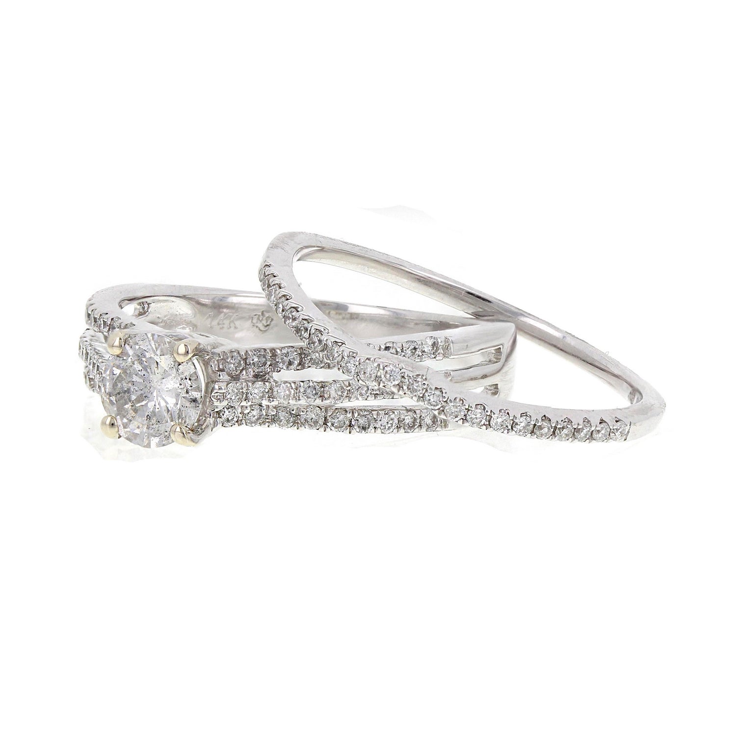 14k White Gold 1ctw Diamond Matching Engagement & Bridal 2 Piece Ring Set