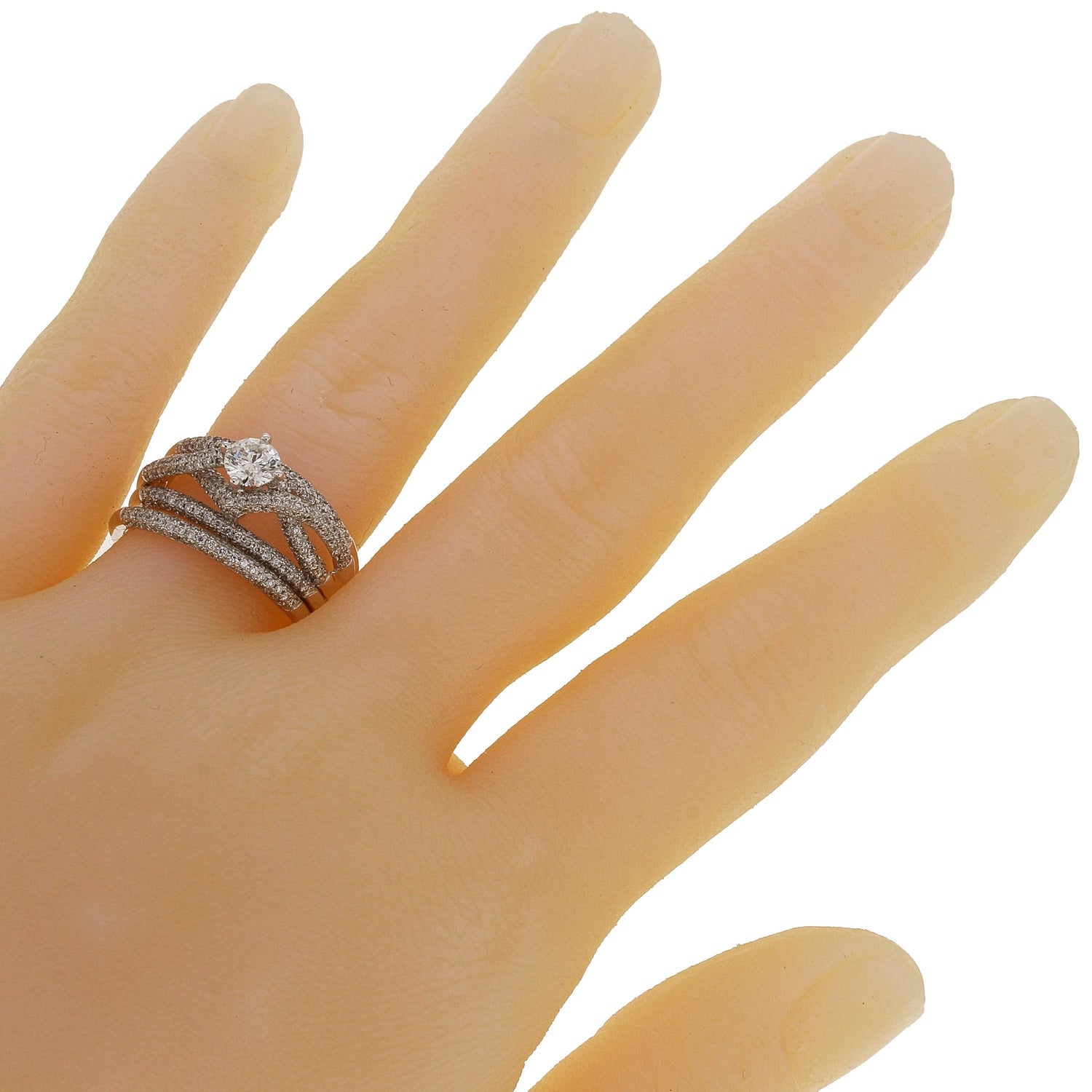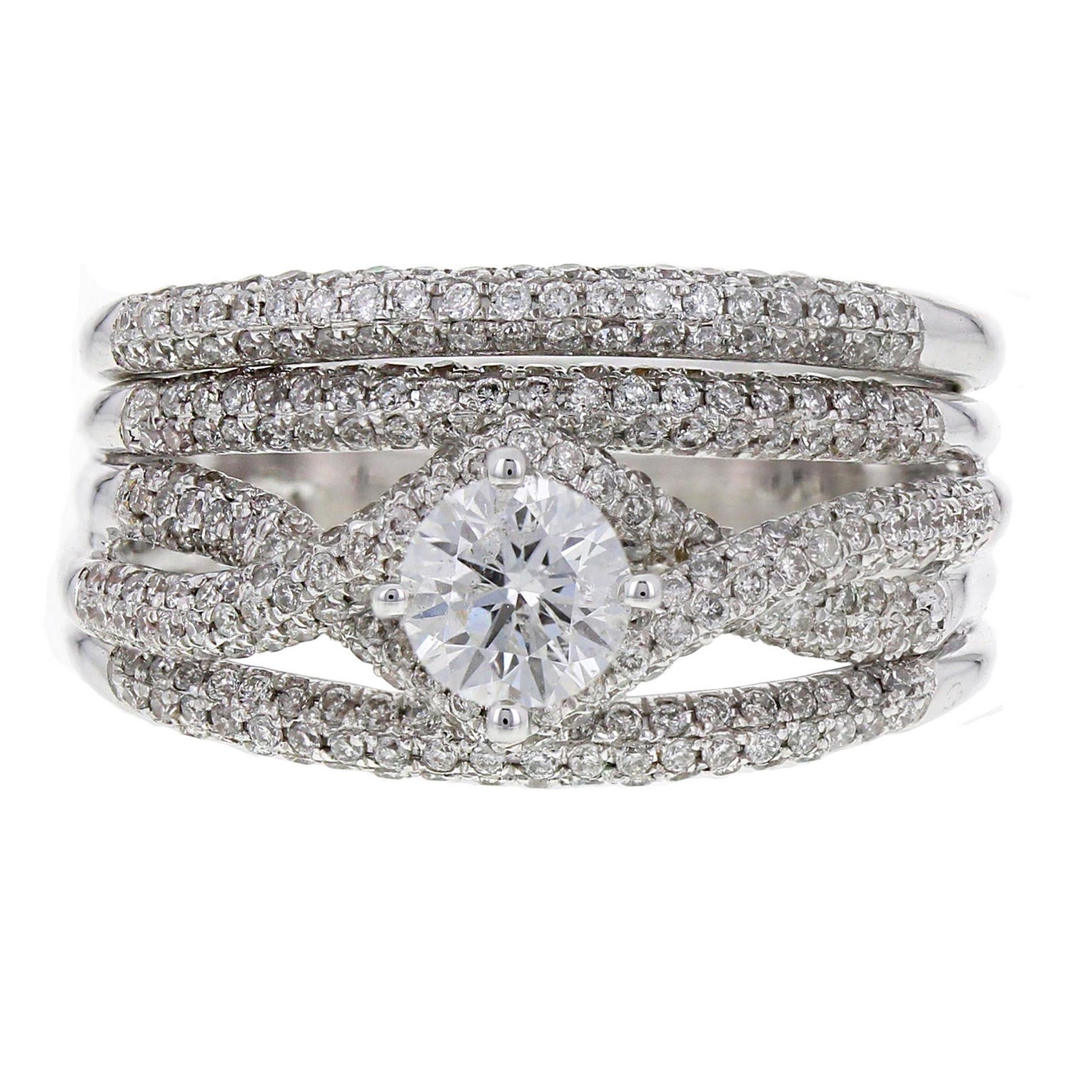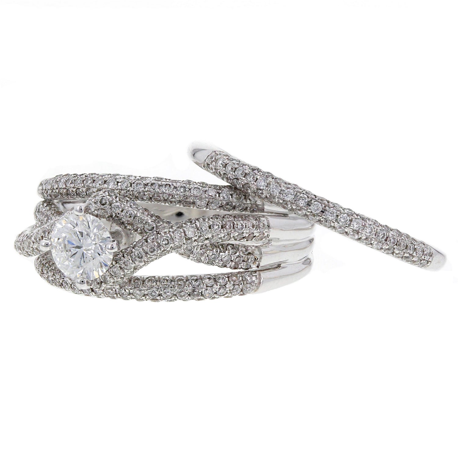 14k White Gold 1 1/2ctw Diamond Pave Matching 2 Piece Bridal Ring Set