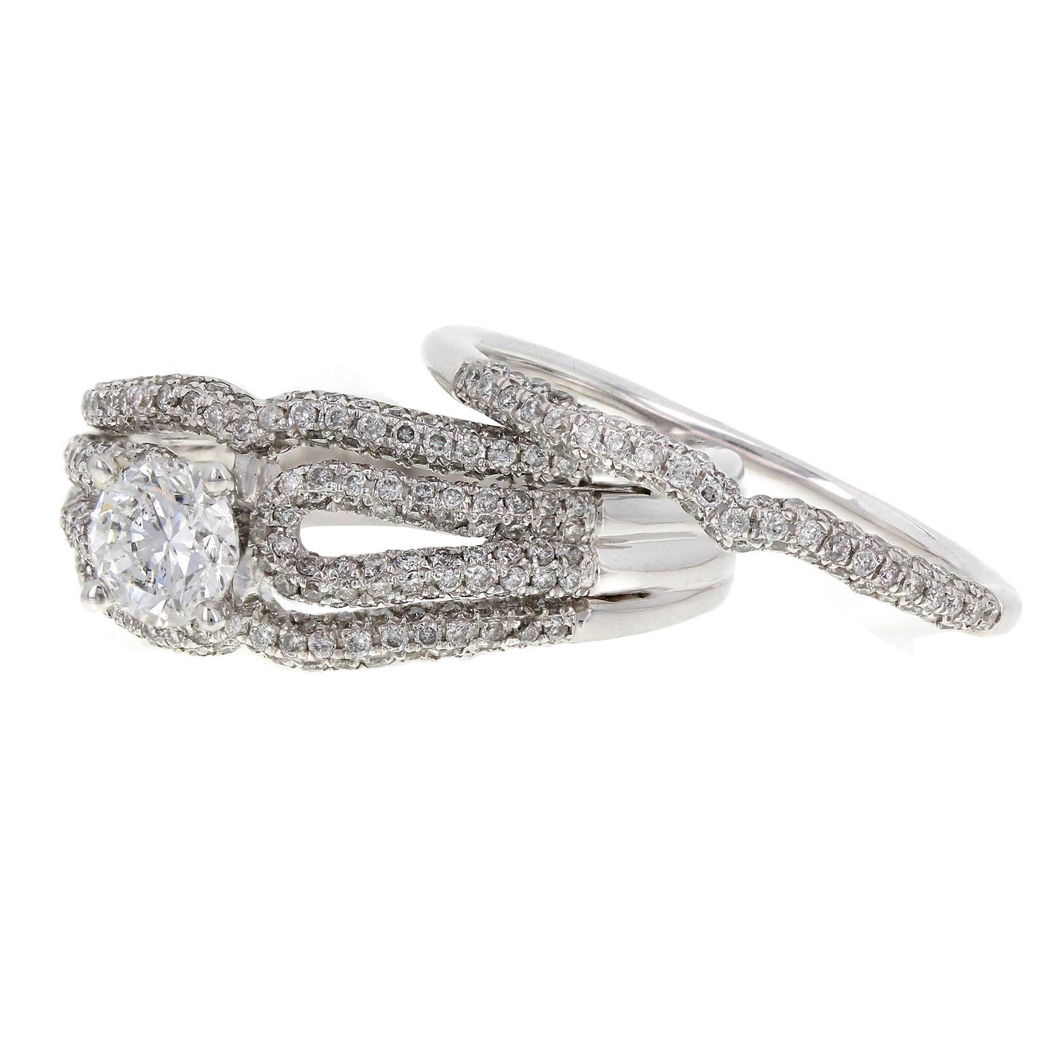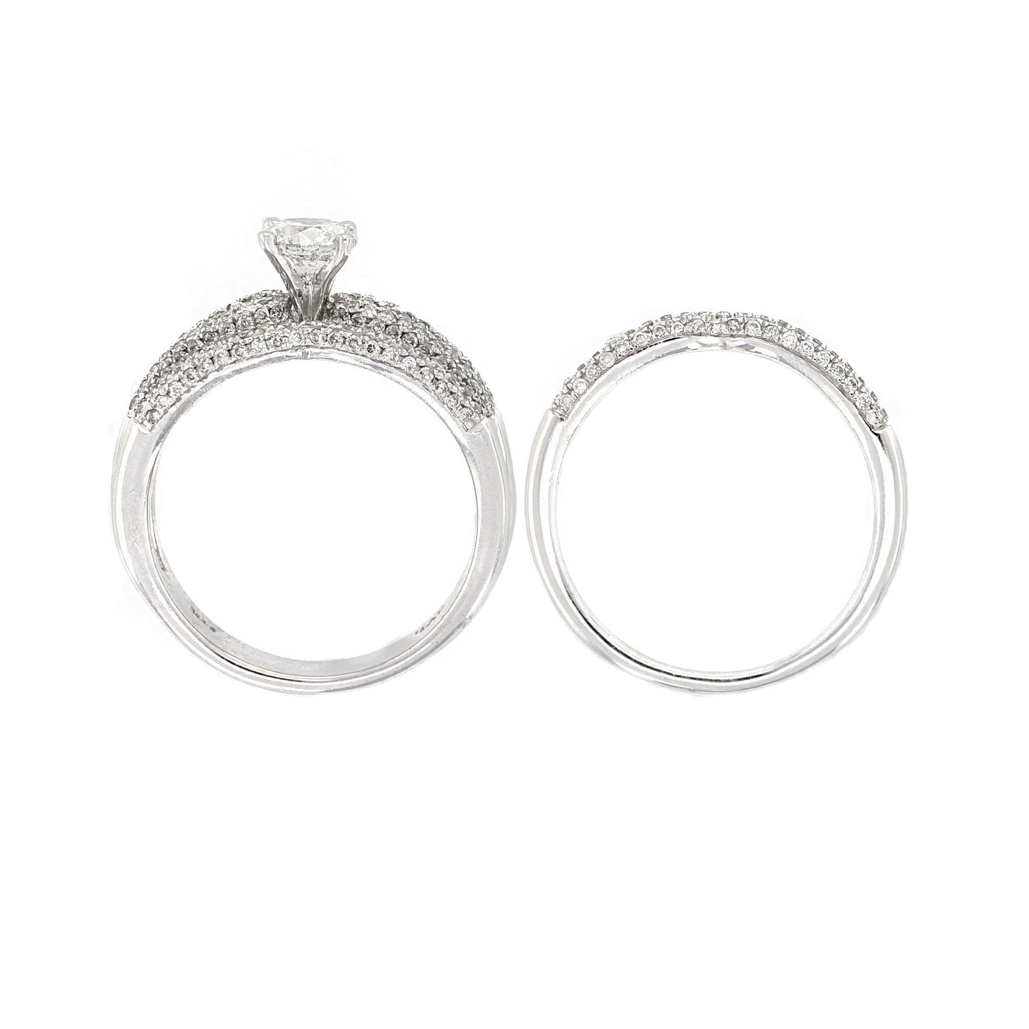 14k White Gold 1.51ctw Diamond Pave Multi-Row Matching 2 Piece Bridal Ring Set