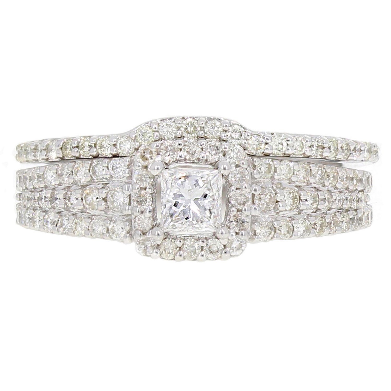 14k White Gold 1.20ctw Princess Diamond Engagement & Wedding 2 Piece Ring Set