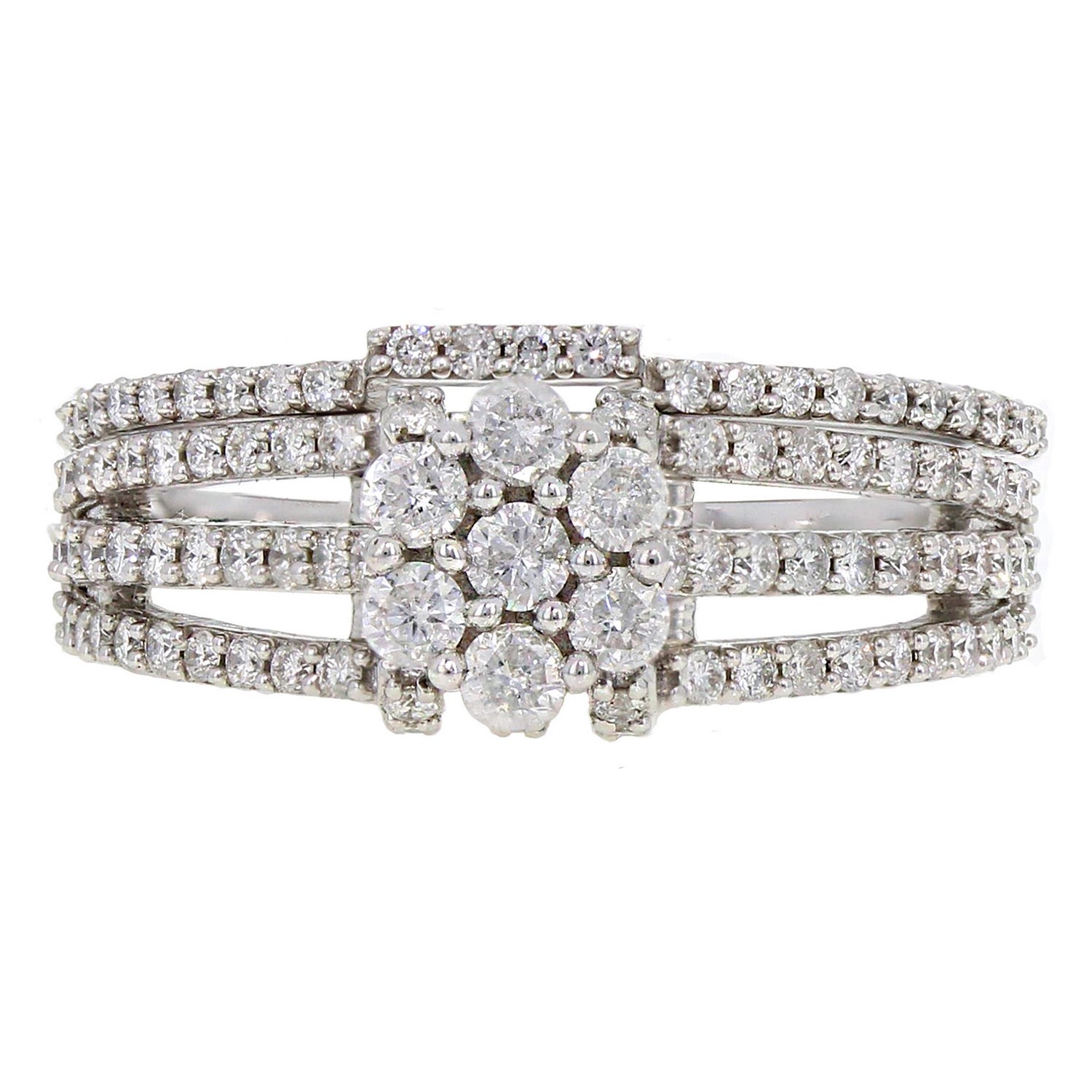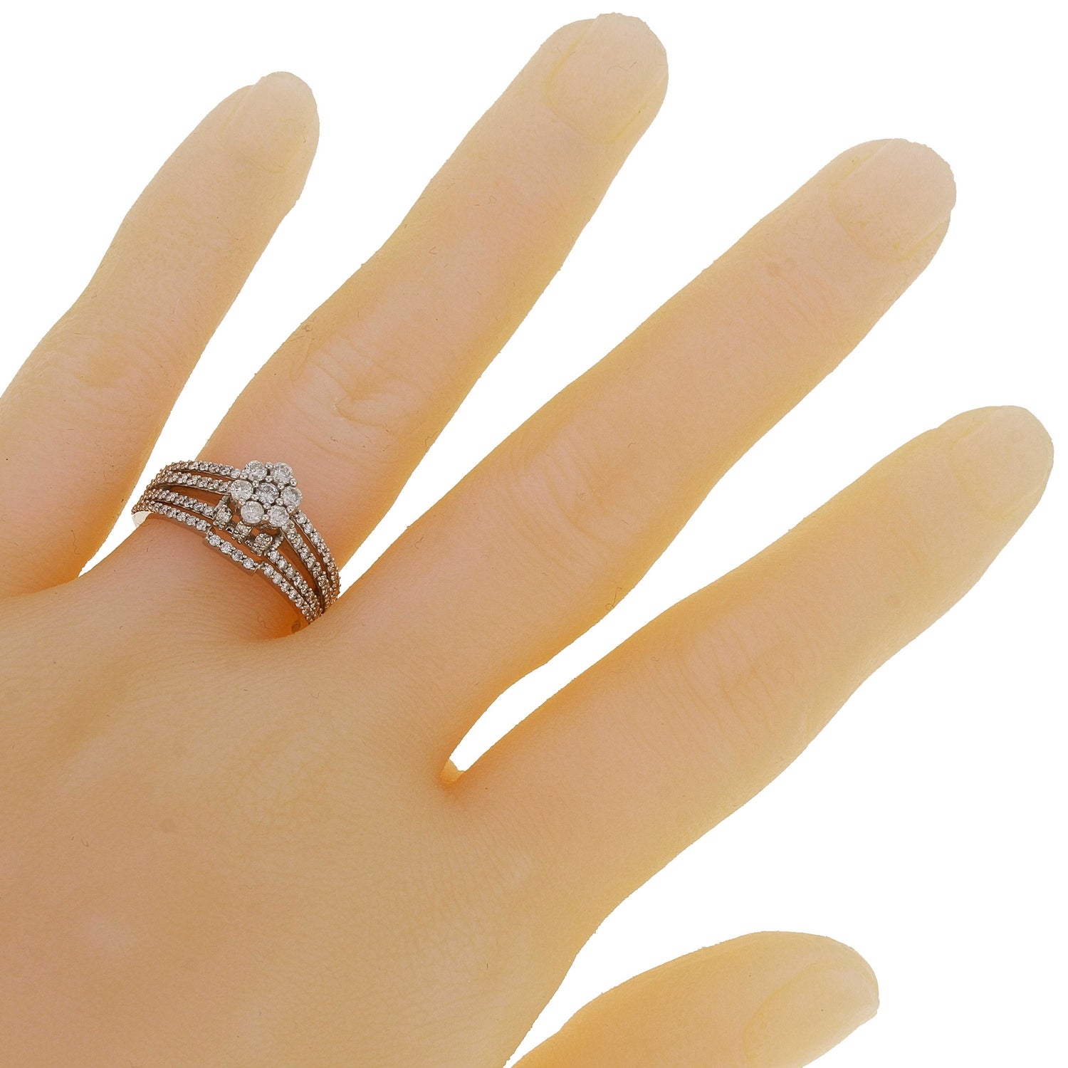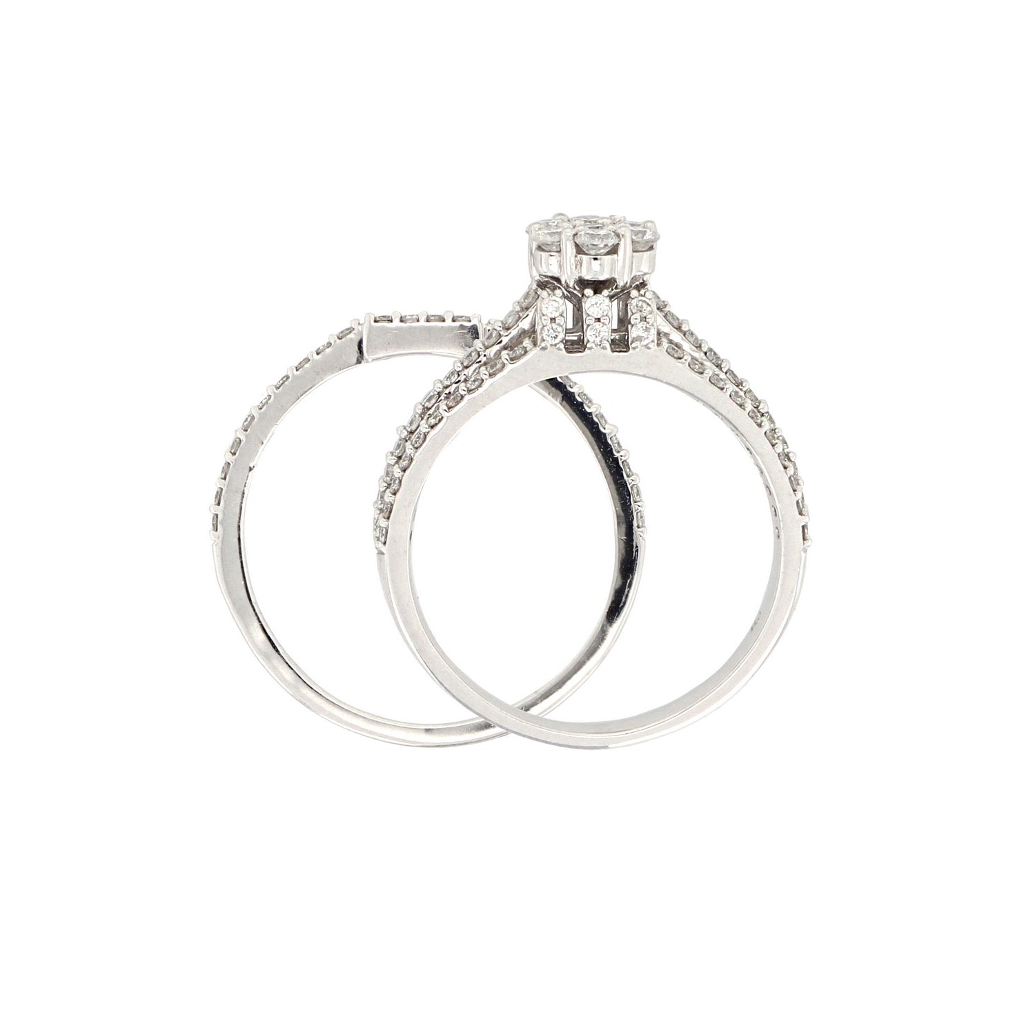 14k White Gold 0.87ctw Diamond Cluster Multi-Row 2 Piece Bridal Ring Set
