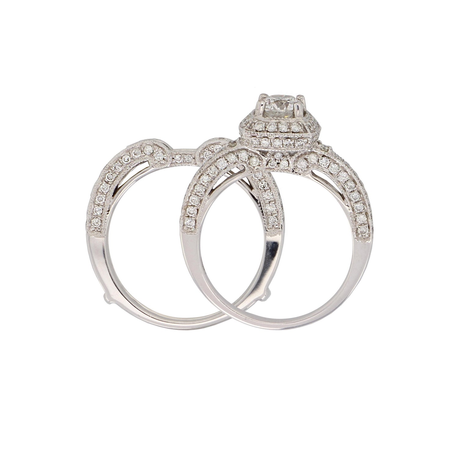 14k White Gold 1.95ctw Diamond Pave Matching Engagement & Ring Guard Bridal Set