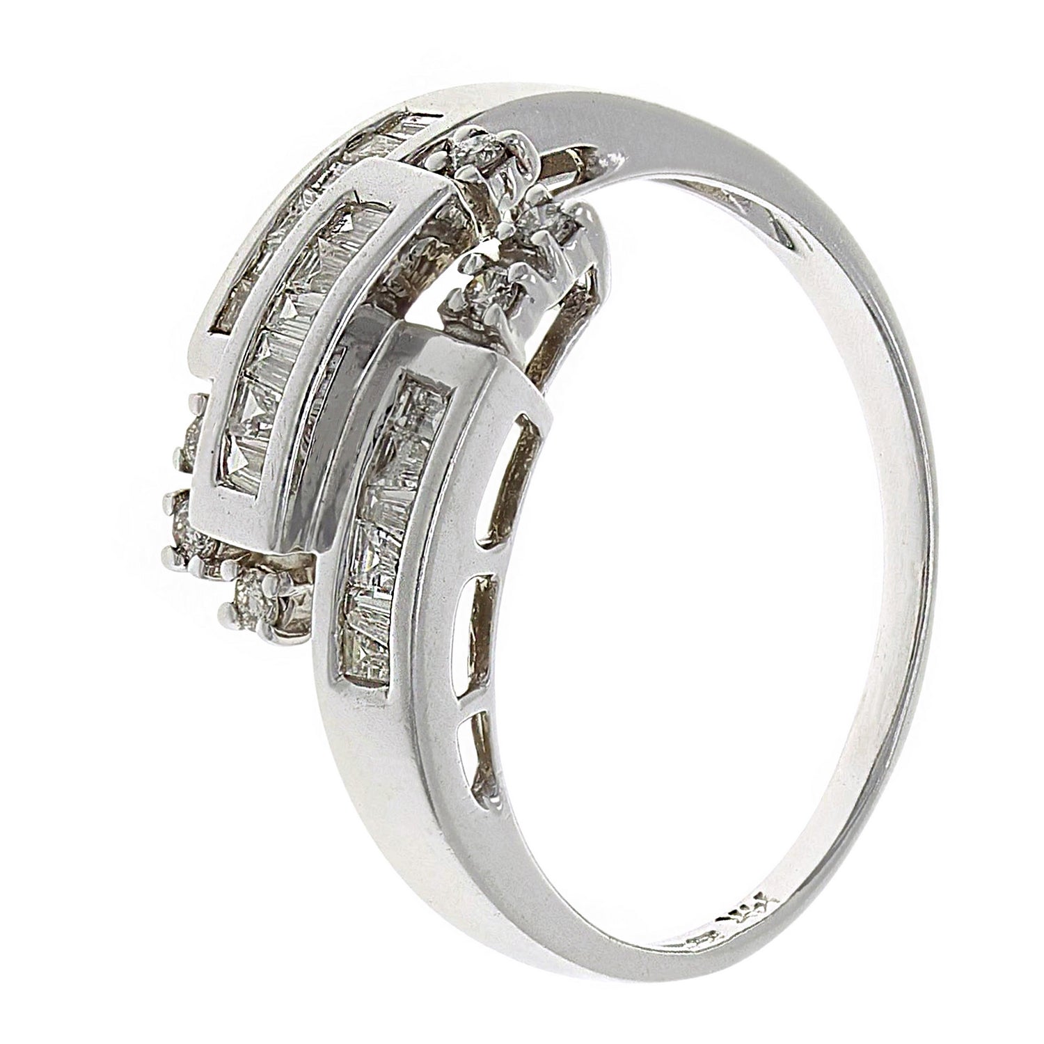 14k White Gold 0.80ctw Baguette Diamond Cluster Ring
