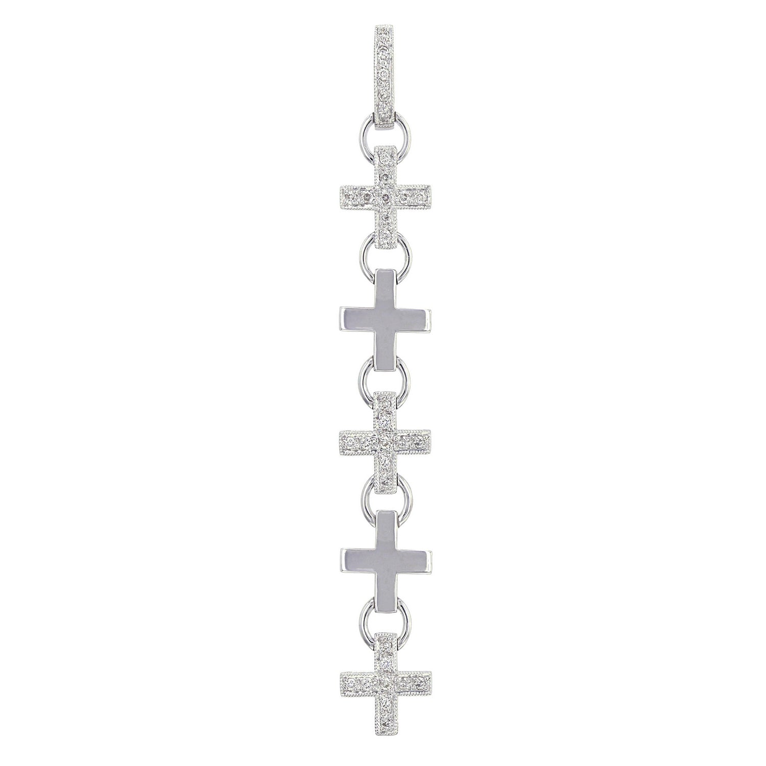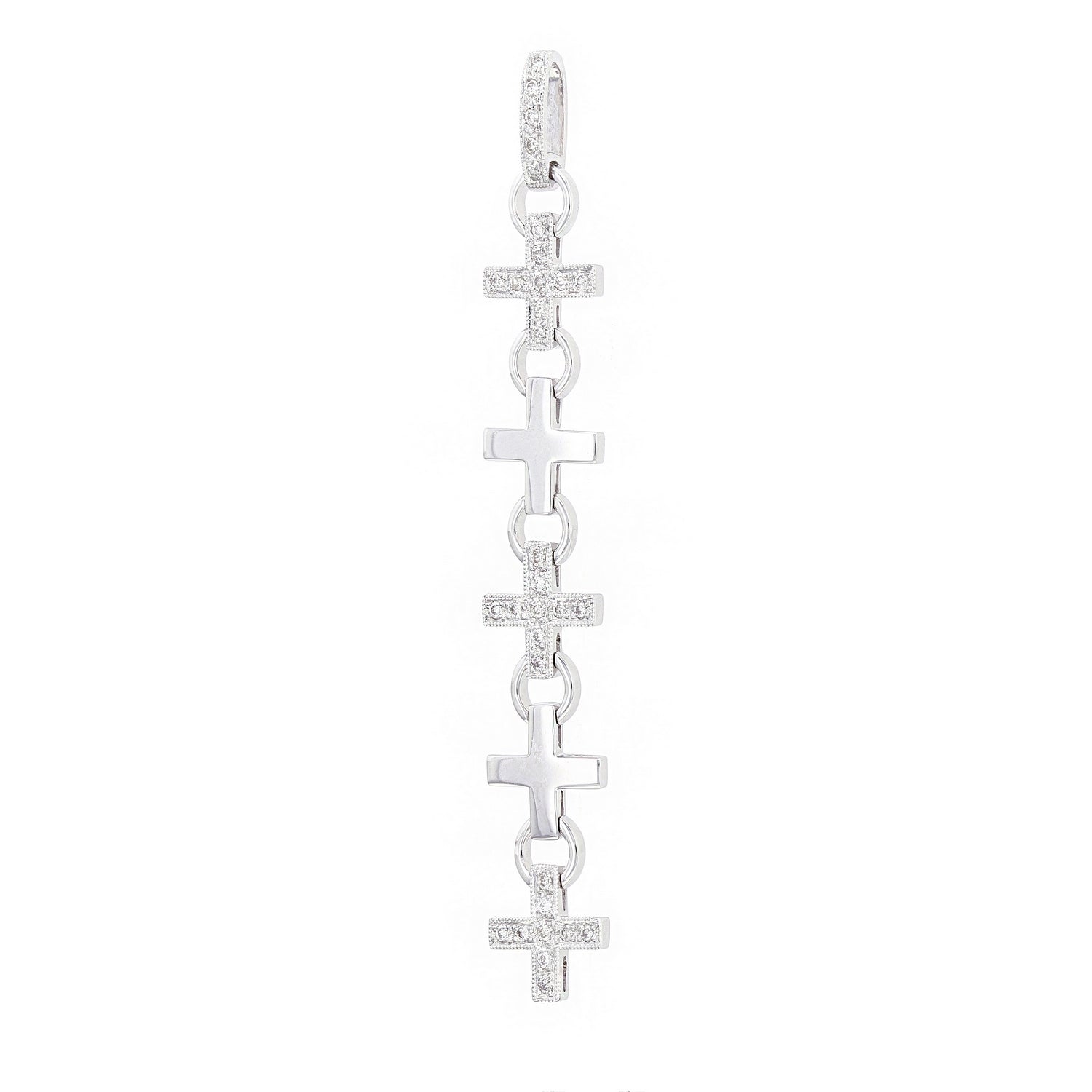 18k White Gold 1/4ctw Brilliant Cut Diamond Pave Dangle Cross Pendant