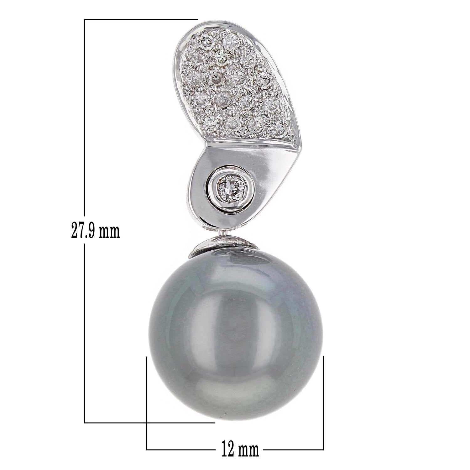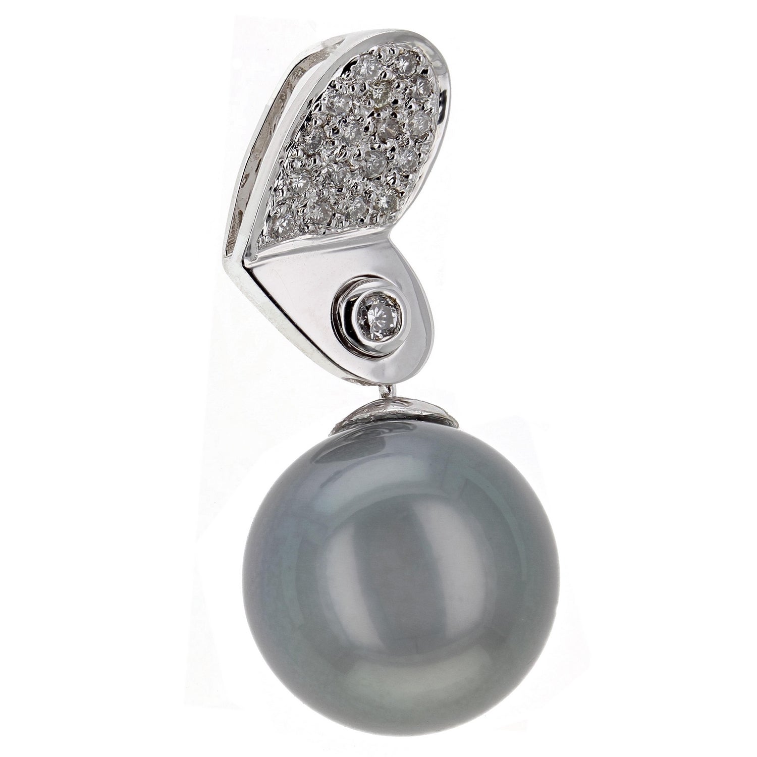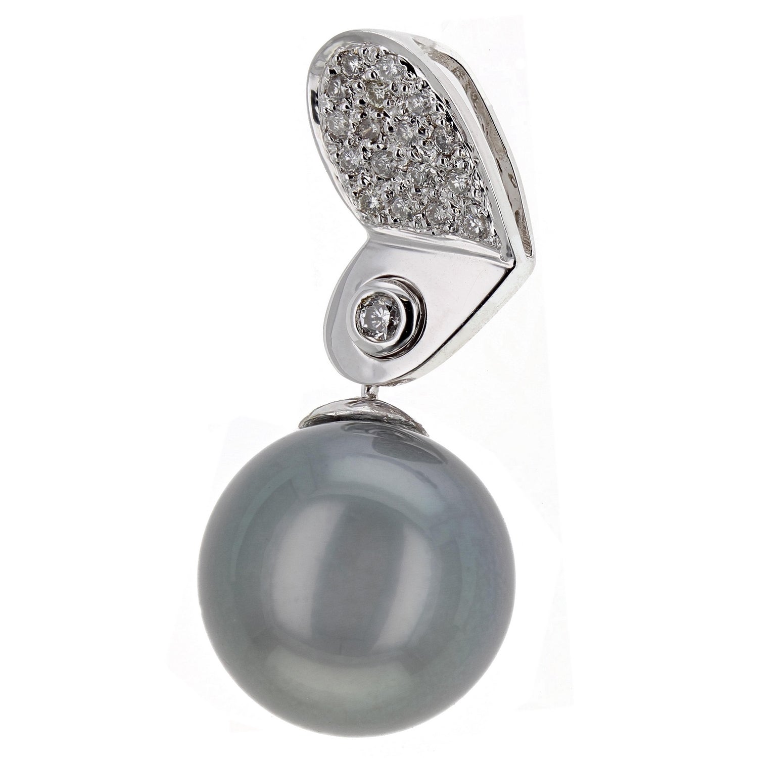 18k White Gold 0.20ctw Diamond & 13mm Black Cultured Tahitian Pearl Pendant