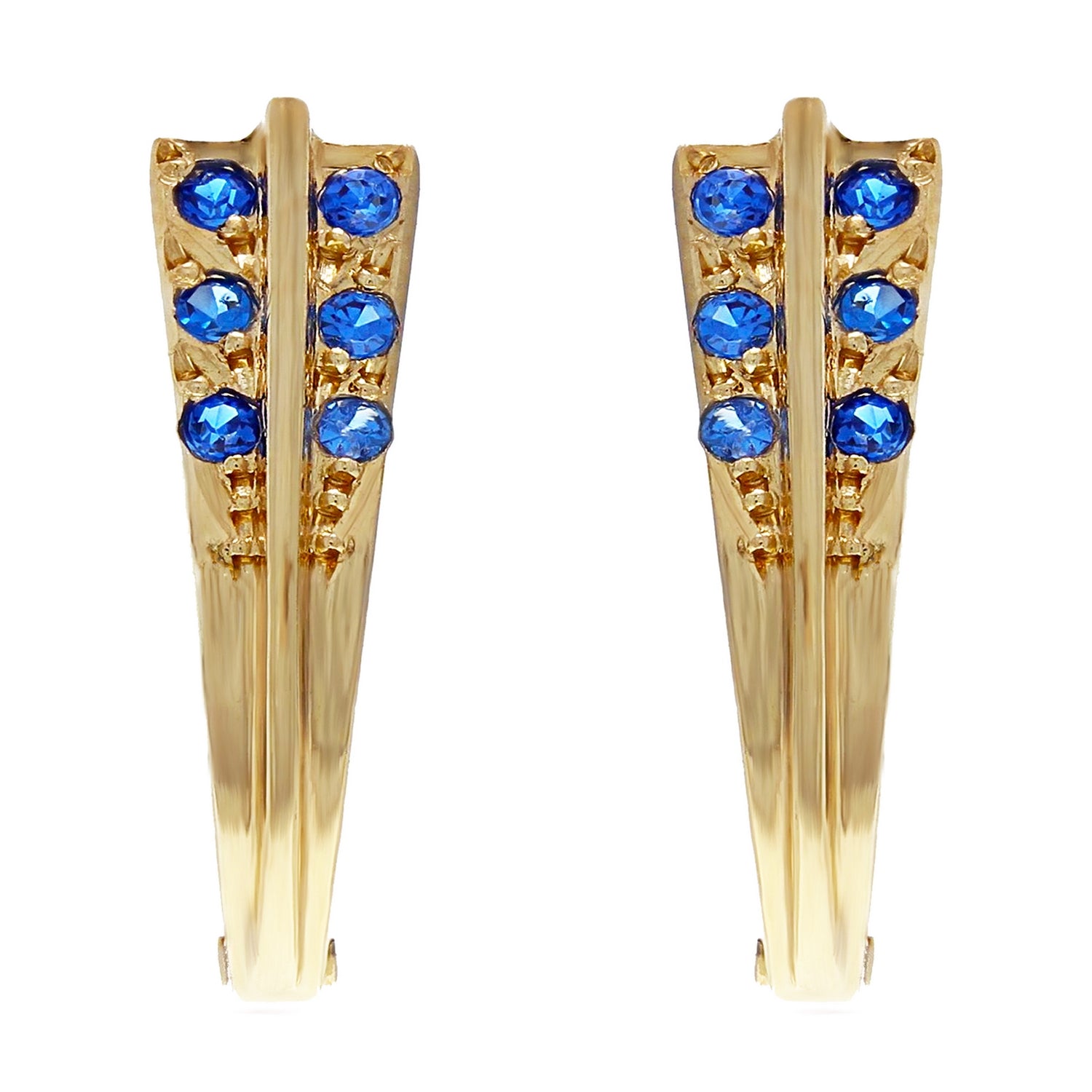 14k Yellow Gold Blue Sparkling Crystal Hinge Hoop Huggie Earrings