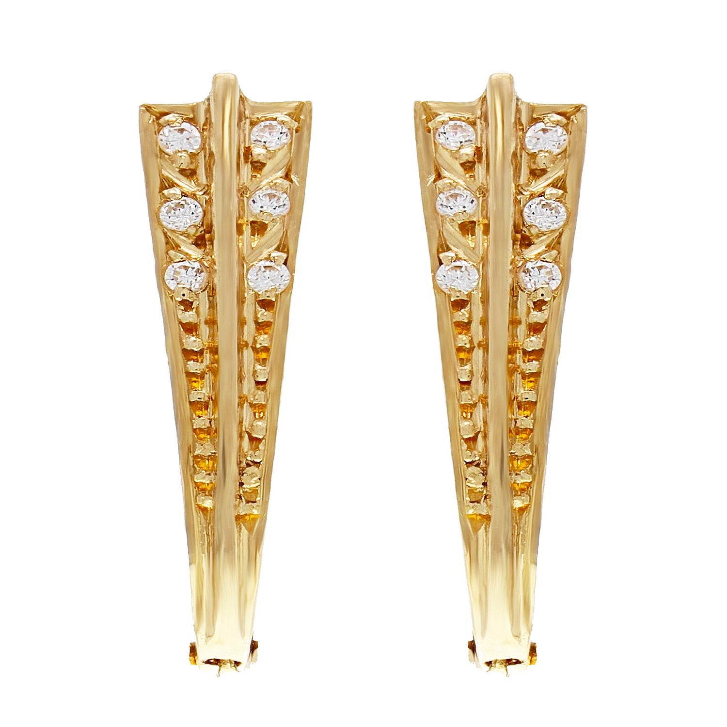 14k Yellow Gold Crystal Accent Antique Style Hinge Earrings