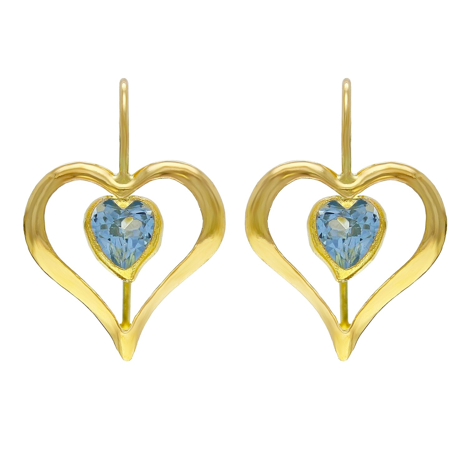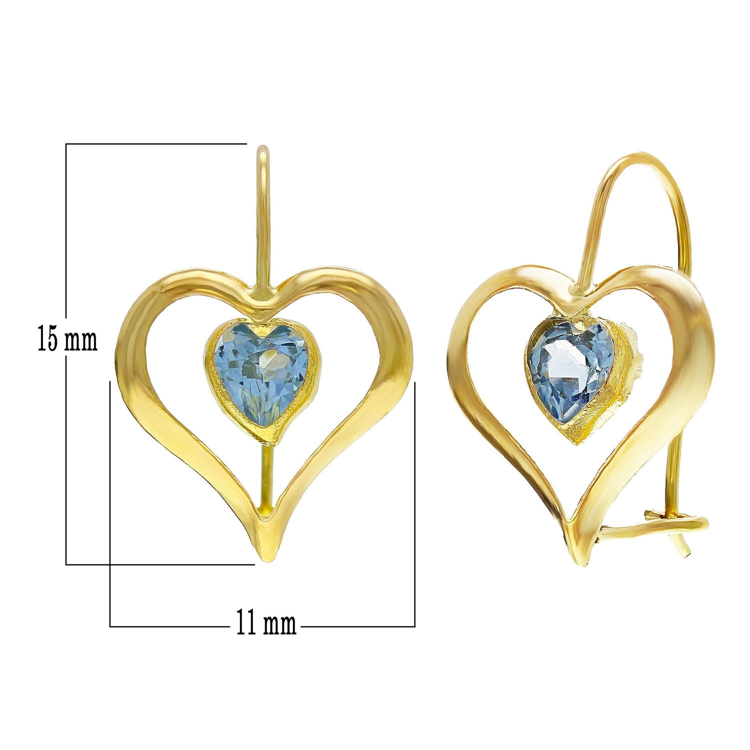 14k Yellow Gold Blue Crystal Heart Dangle Kidney Wire Earrings