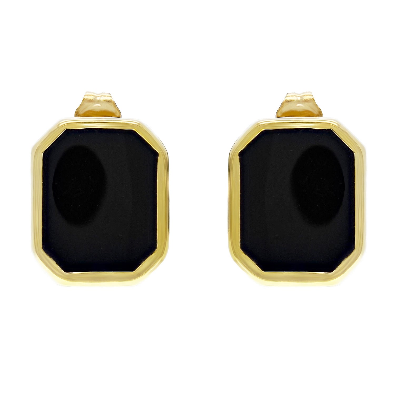 14k Yellow Gold Retro-Modern Geometric Black Onyx Stud Earrings