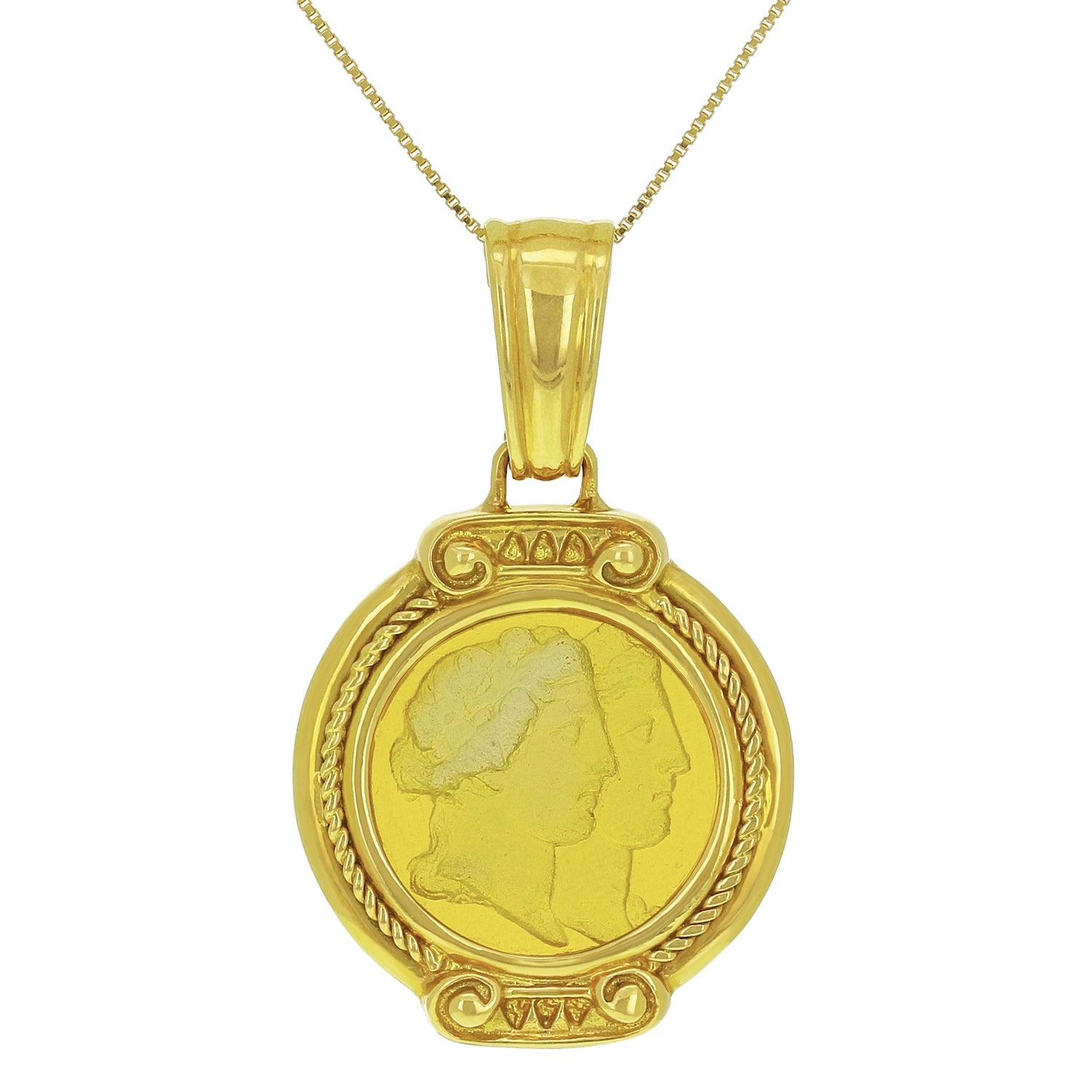 18k Yellow Gold Tagliamonte Venetian Glass Intaglio Detailed Cameo Necklace Set
