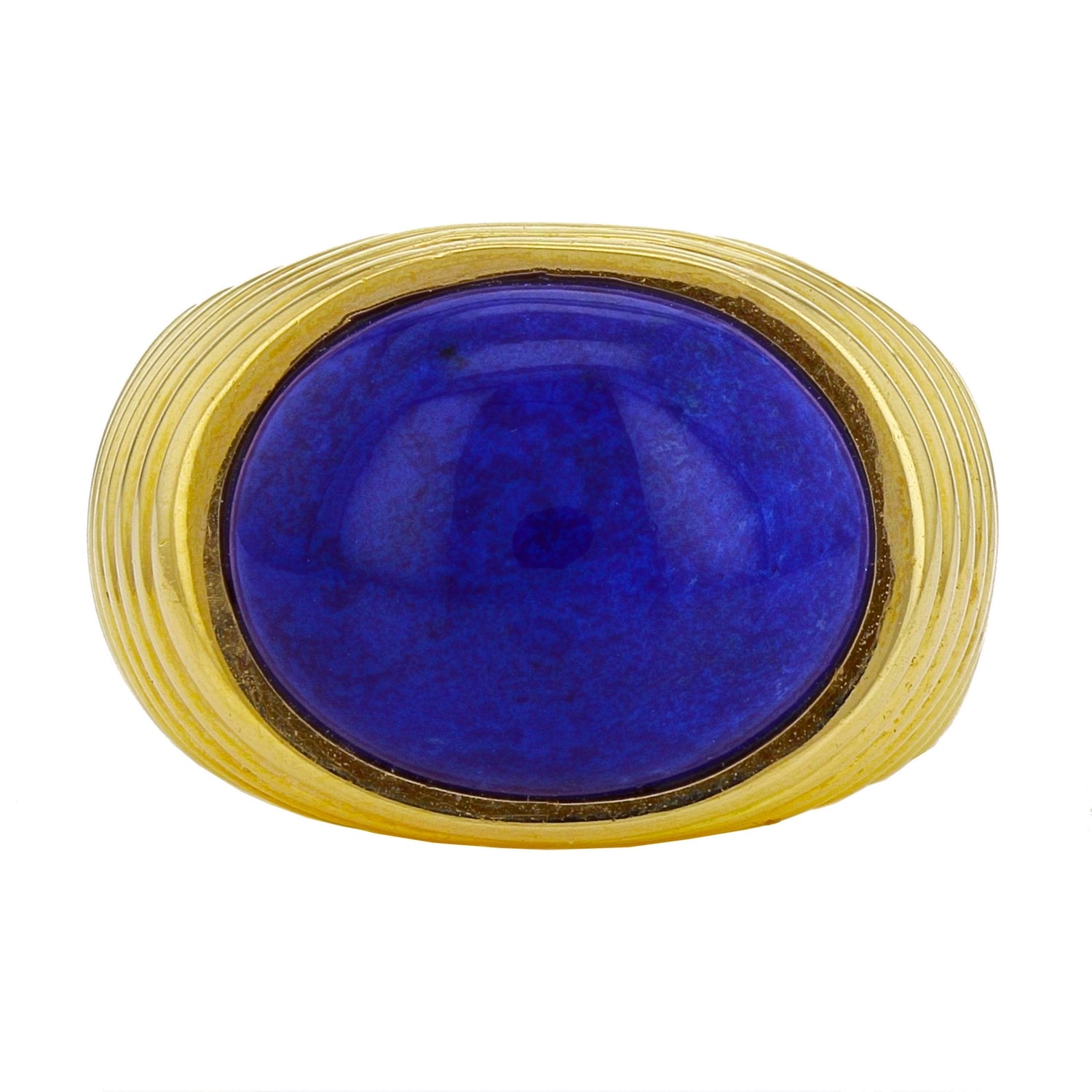 14k Yellow Gold Oval Cabochon Lapis Lazuli Shiny Scalloped Ring