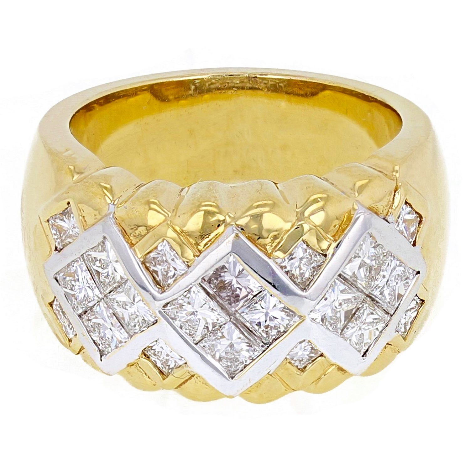 18k Yellow Gold 1 1/2ctw Princess Cut Diamond Square Woven Ring