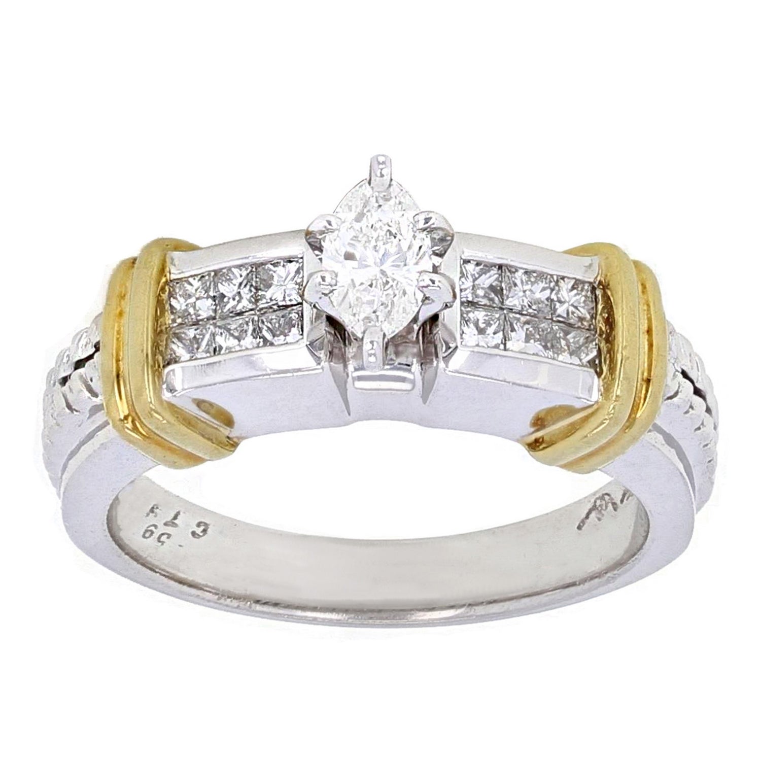 18k White & Yellow Gold 0.63ctw Mixed Cut Diamond Engagement Ring