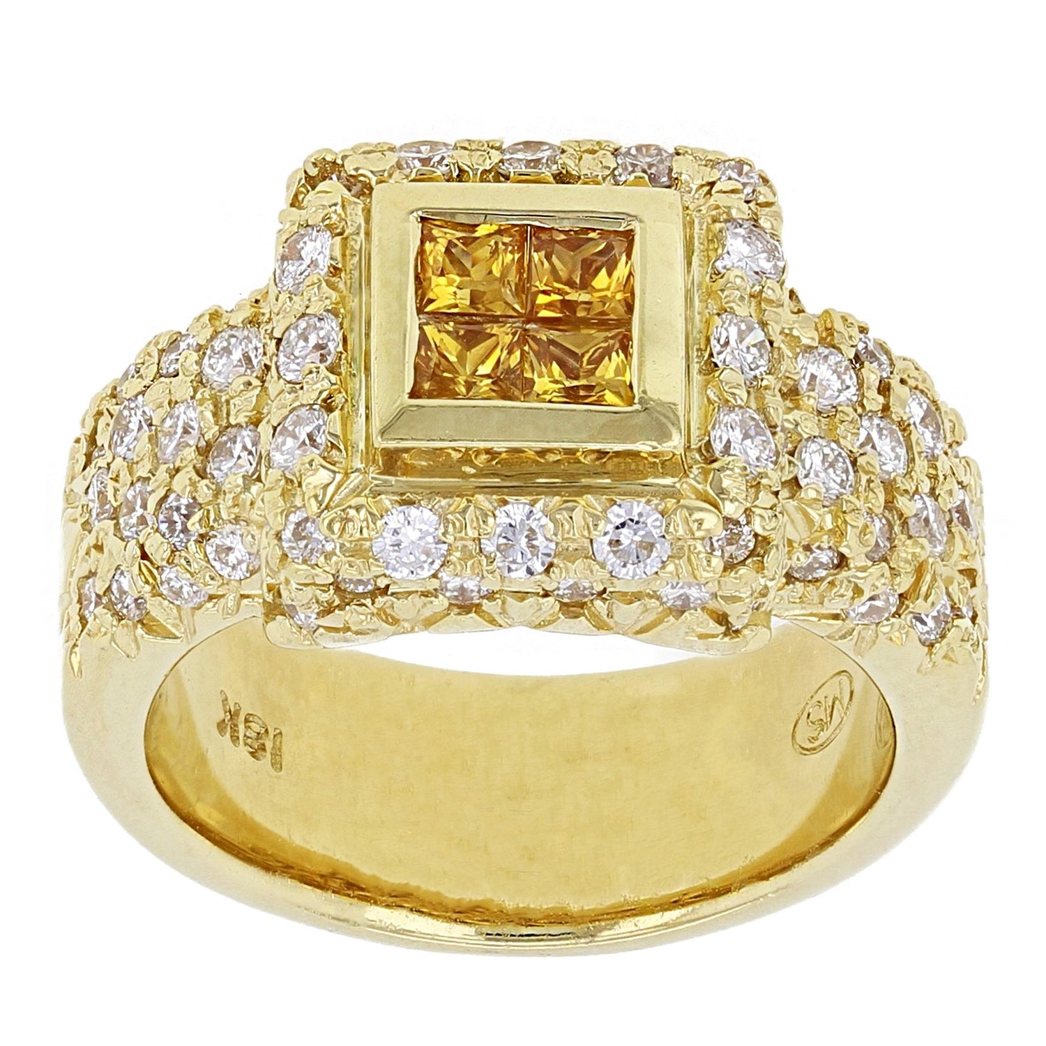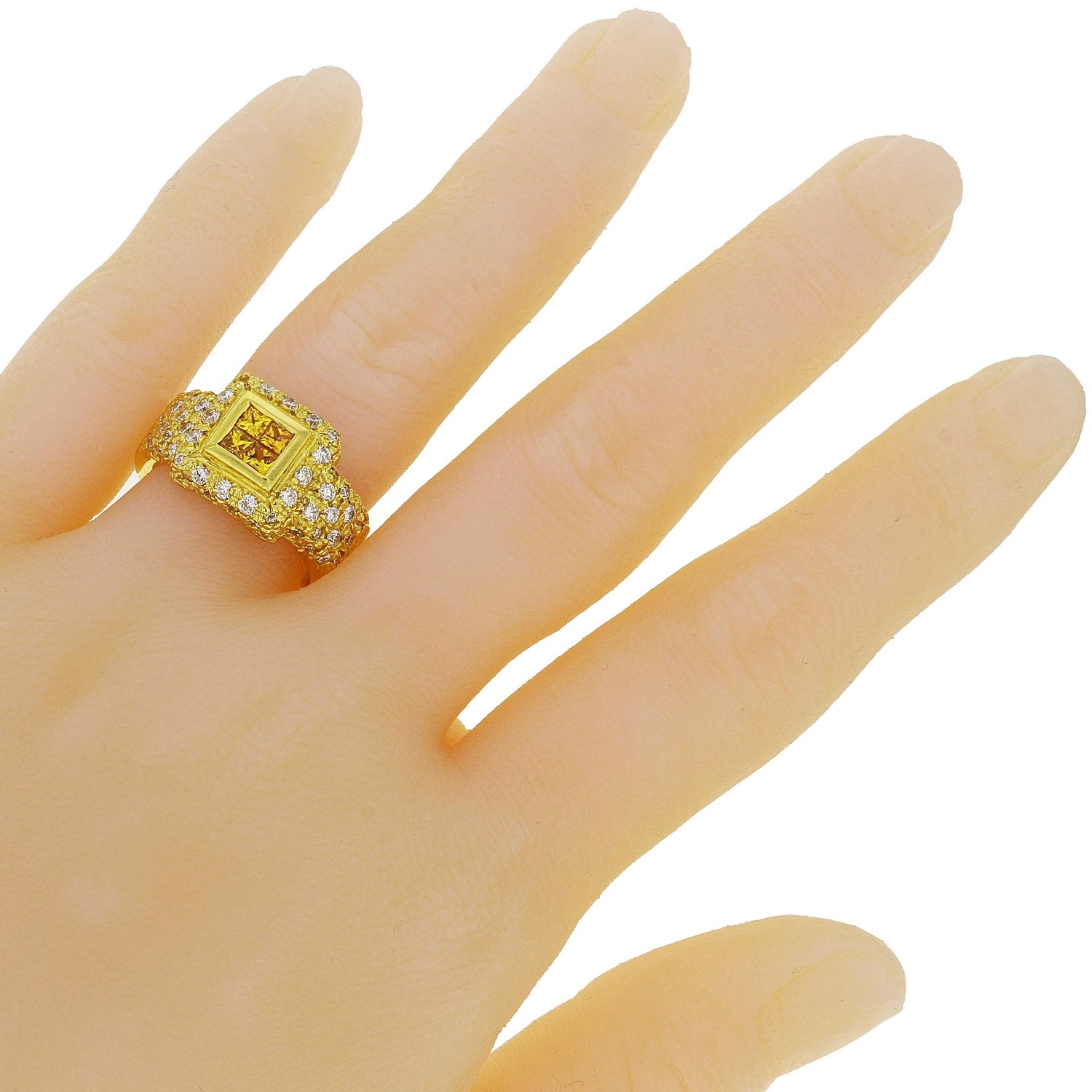 18k Yellow Gold 1 1/4ctw Fancy Yellow & White Diamond Encrusted Ring