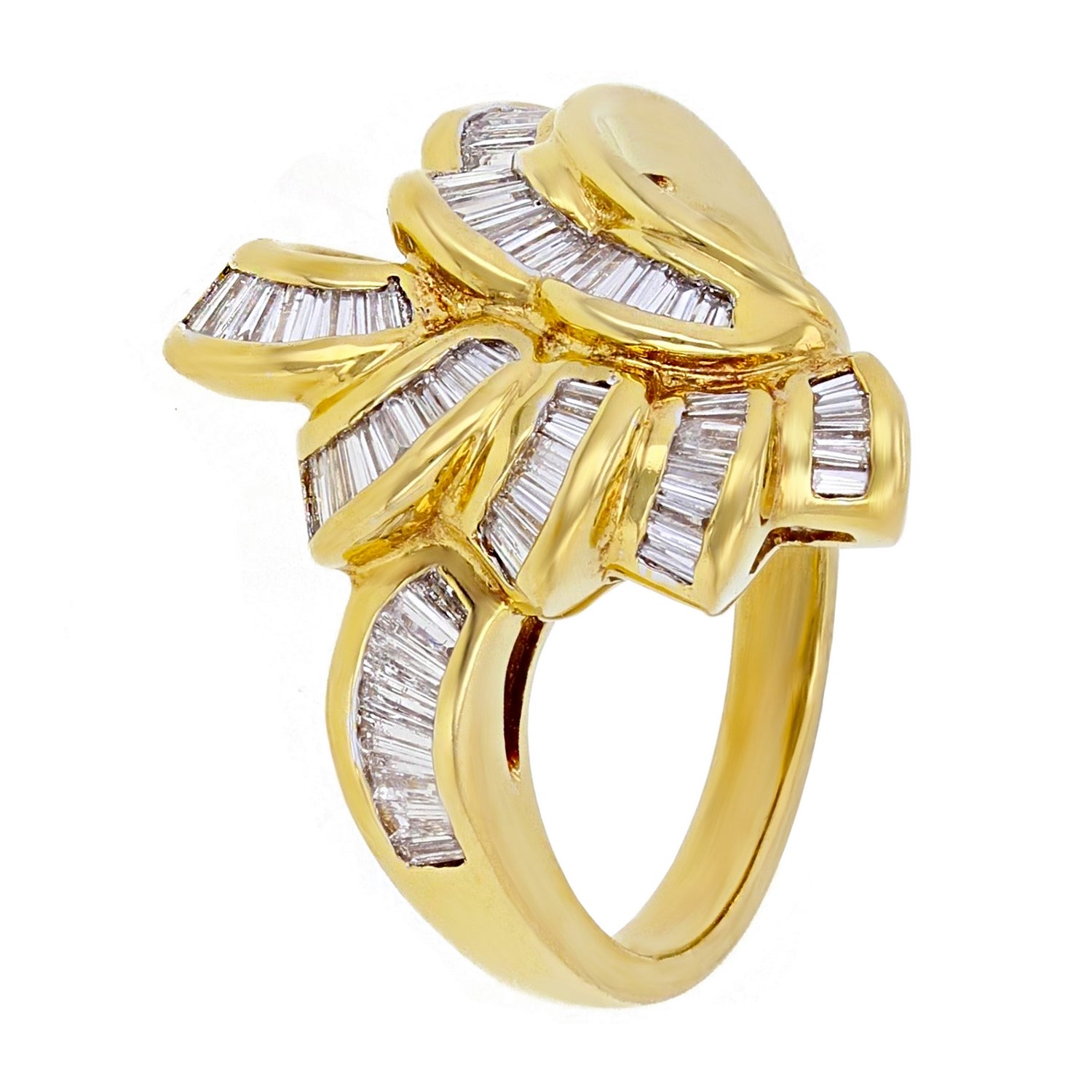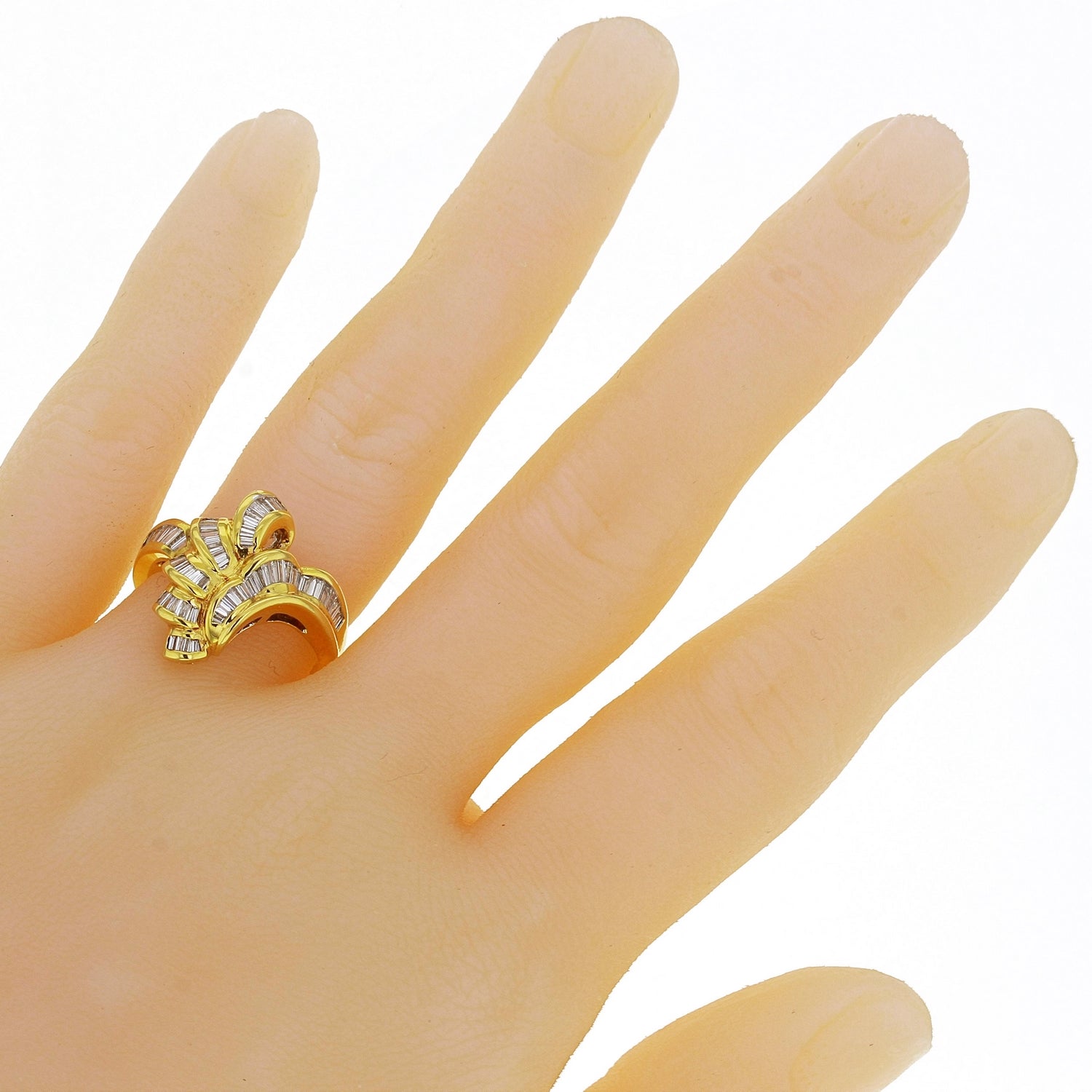 18k Yellow Gold 2ctw Baguette Diamond Ribbon Ring