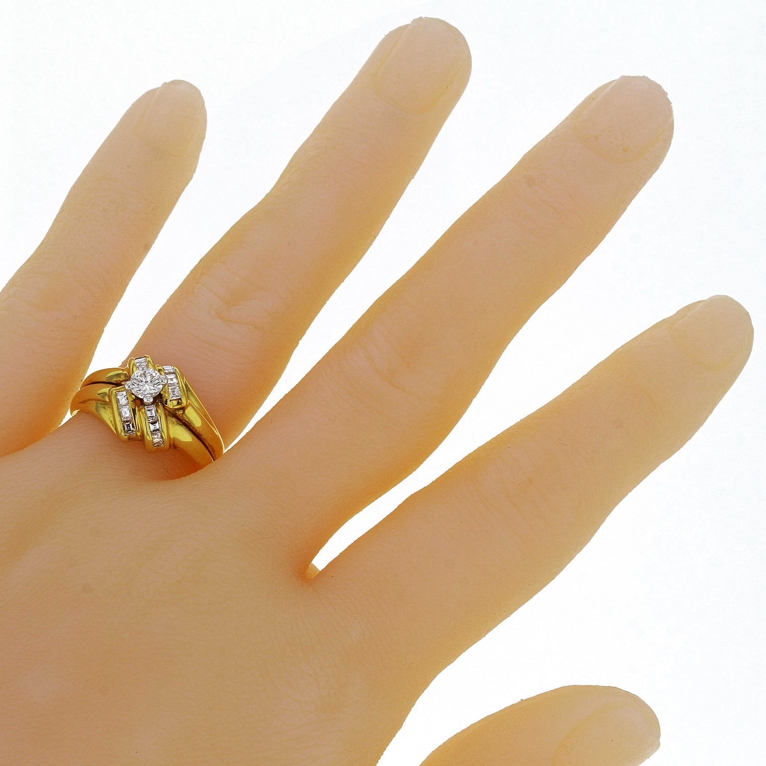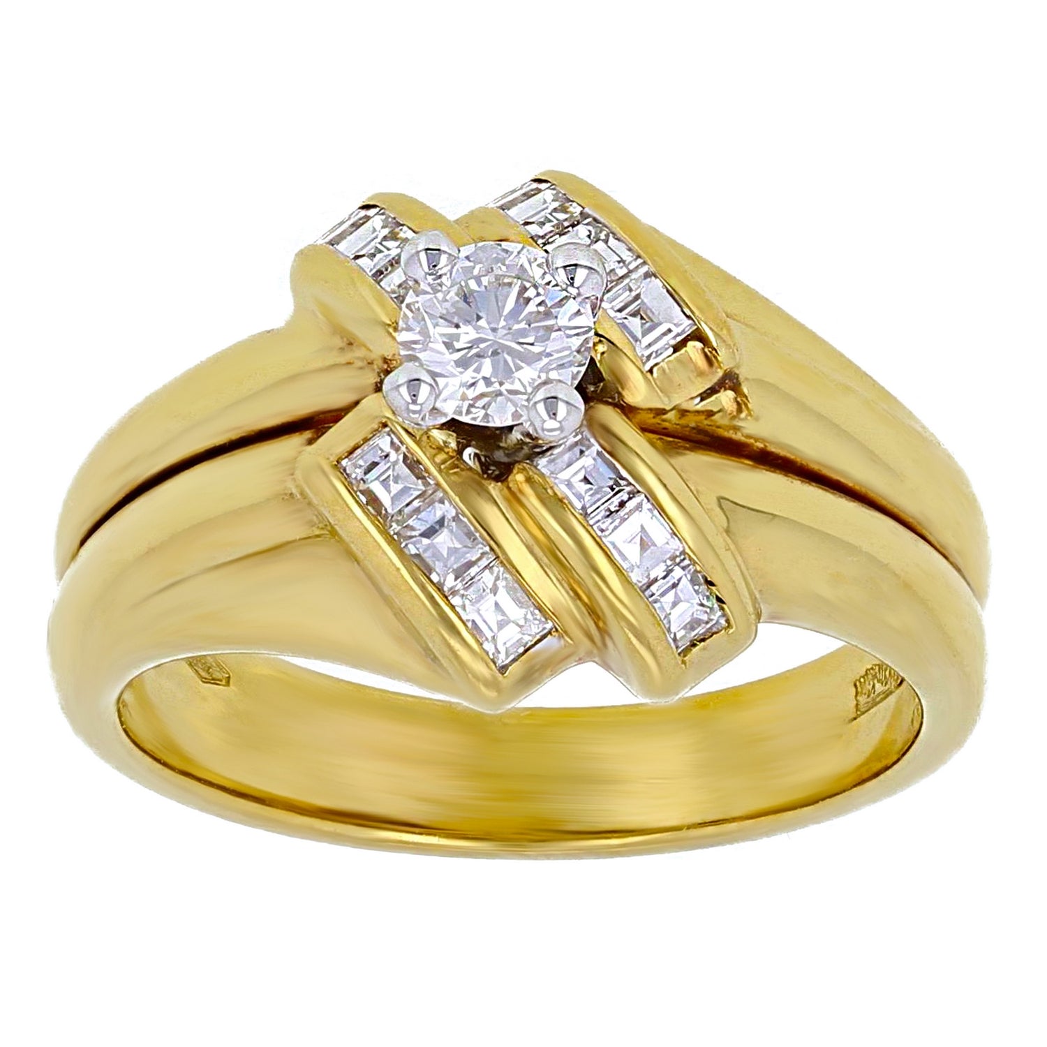18k Yellow Gold 0.68ctw Diamond Engagement Ring & Matching Adjoined Wedding Band