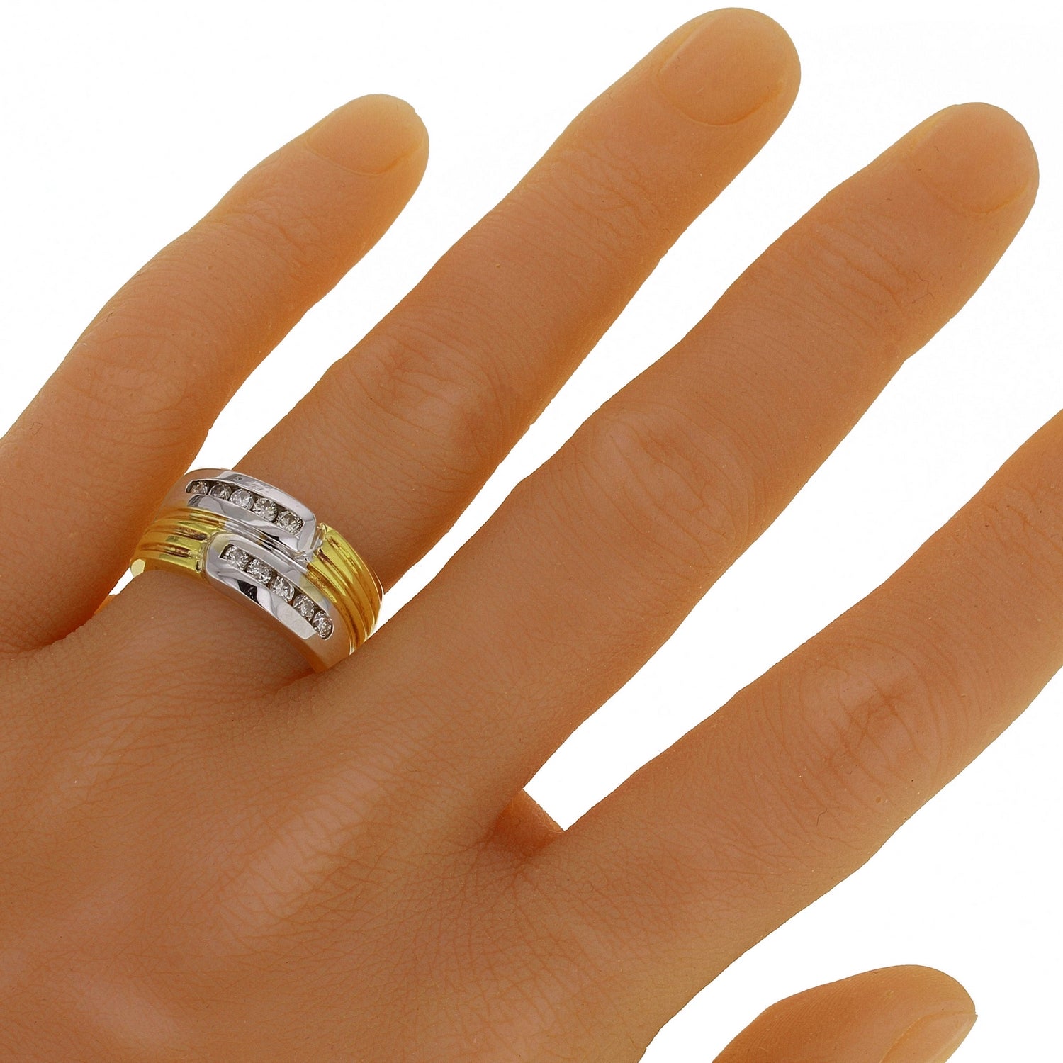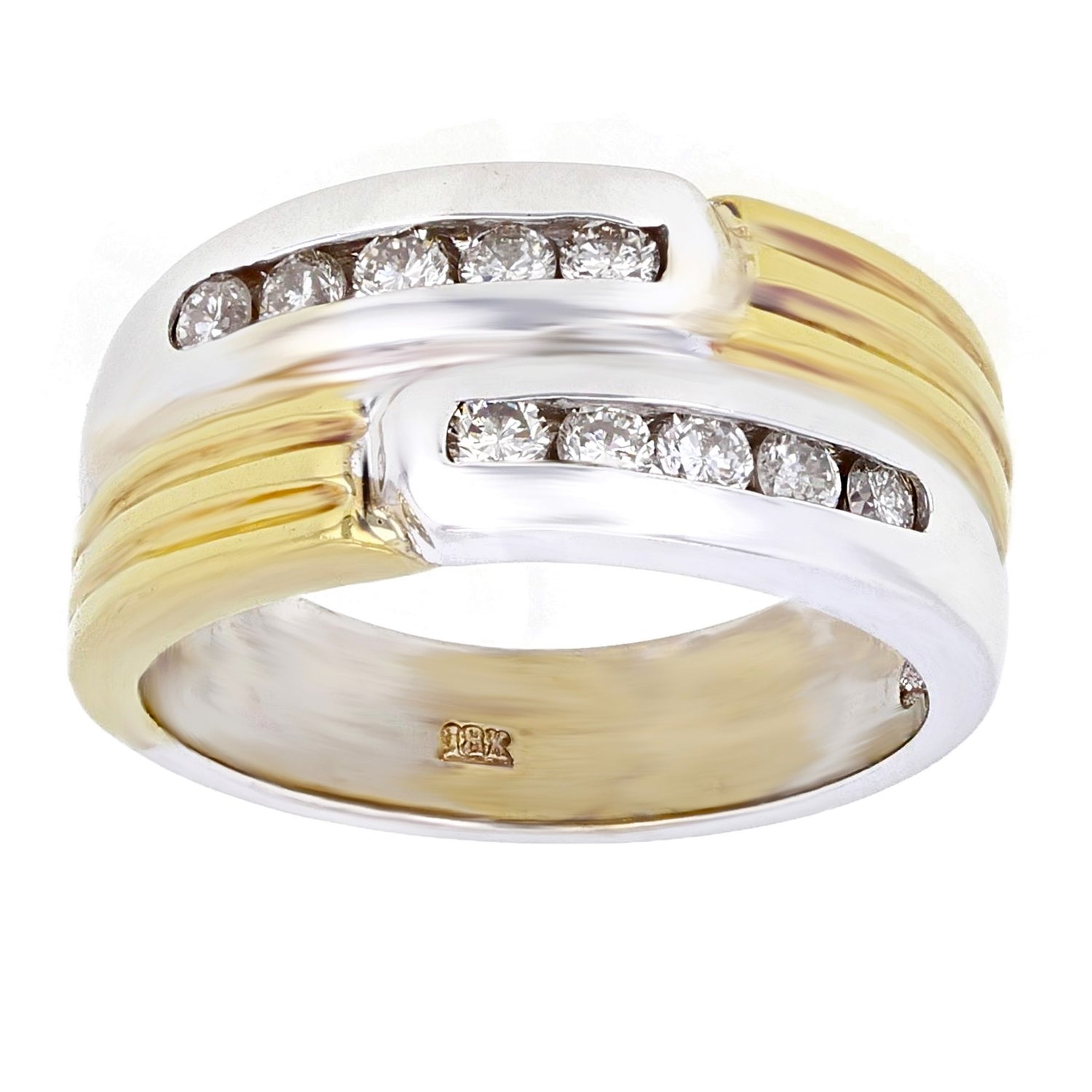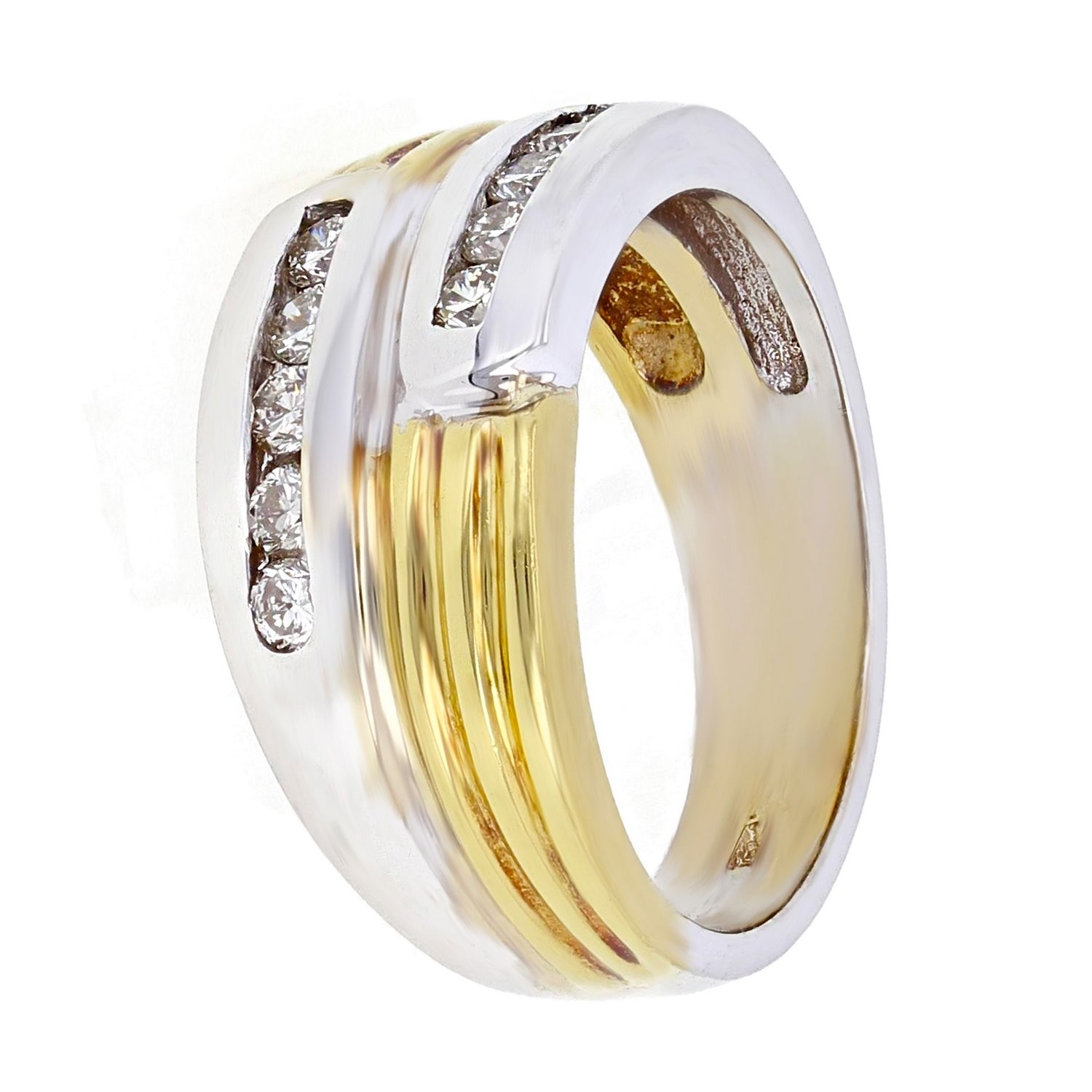 Men's 18k Yellow & White Gold 0.42ctw Diamond Textured Wedding Band