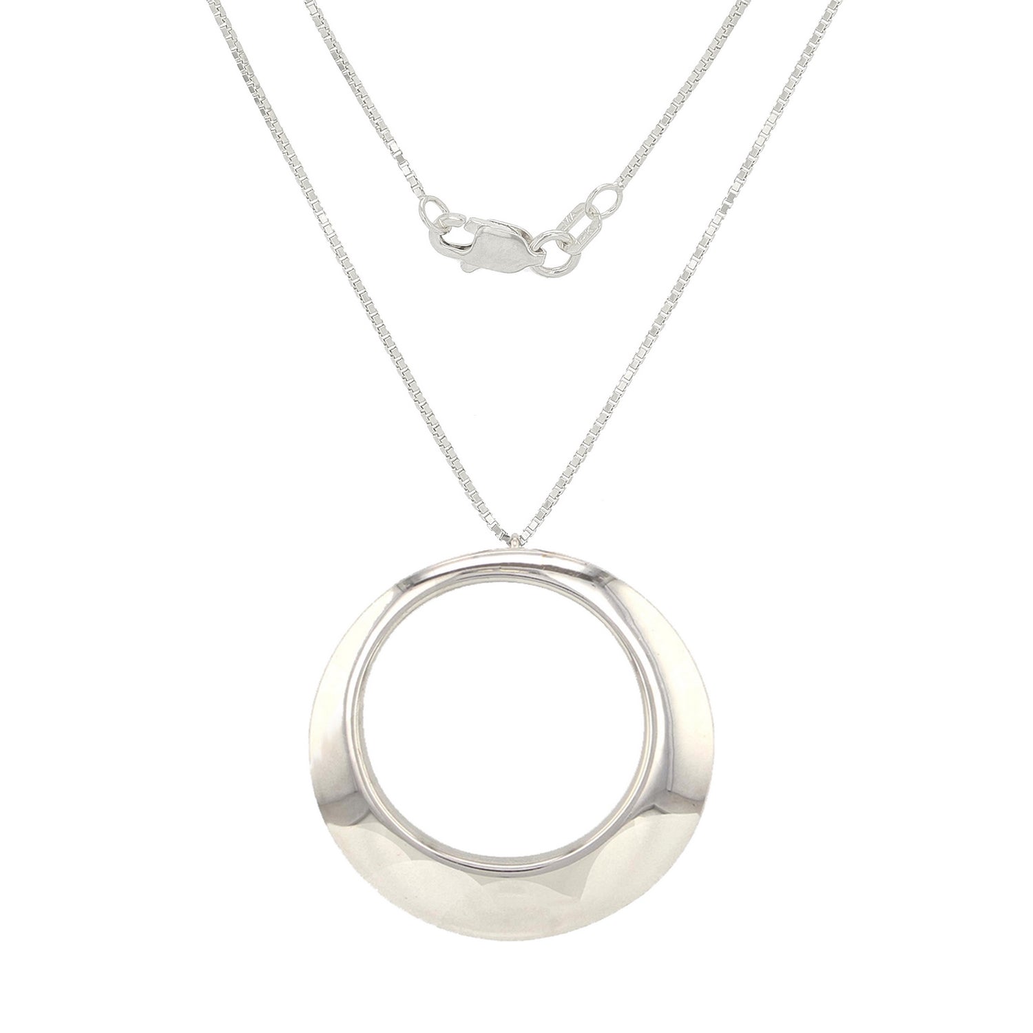 Italian 14k White Gold Eternity Love Circle Pendant Necklace