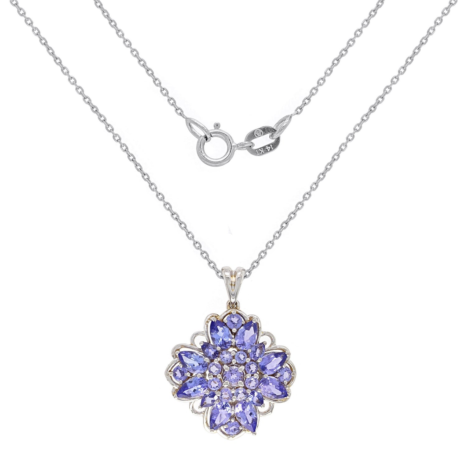 Italian14k White Gold 1.45ctw Tanzanite Flower Cluster Pendant Necklace, 18"